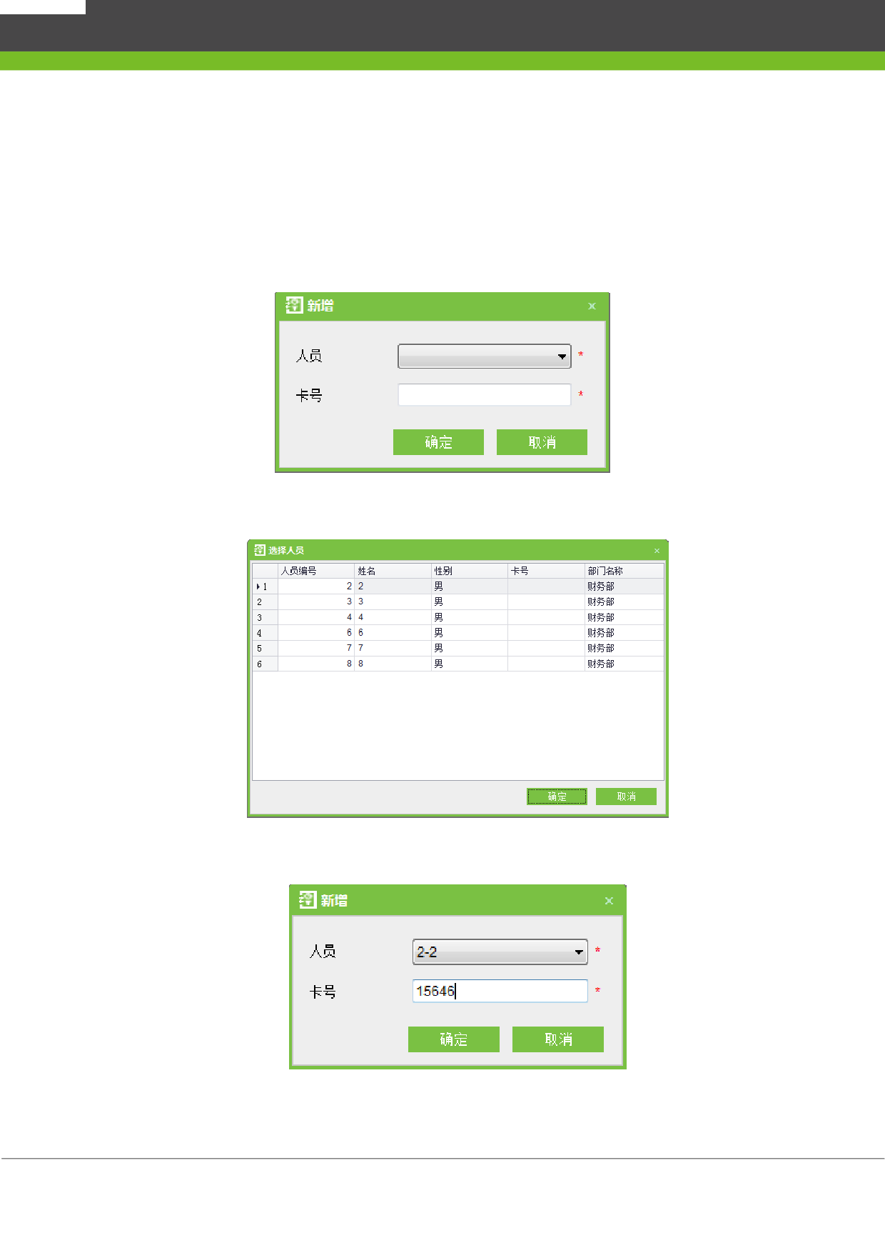 在选择了人员的新增界面,输入人员卡号,点击【确认】。