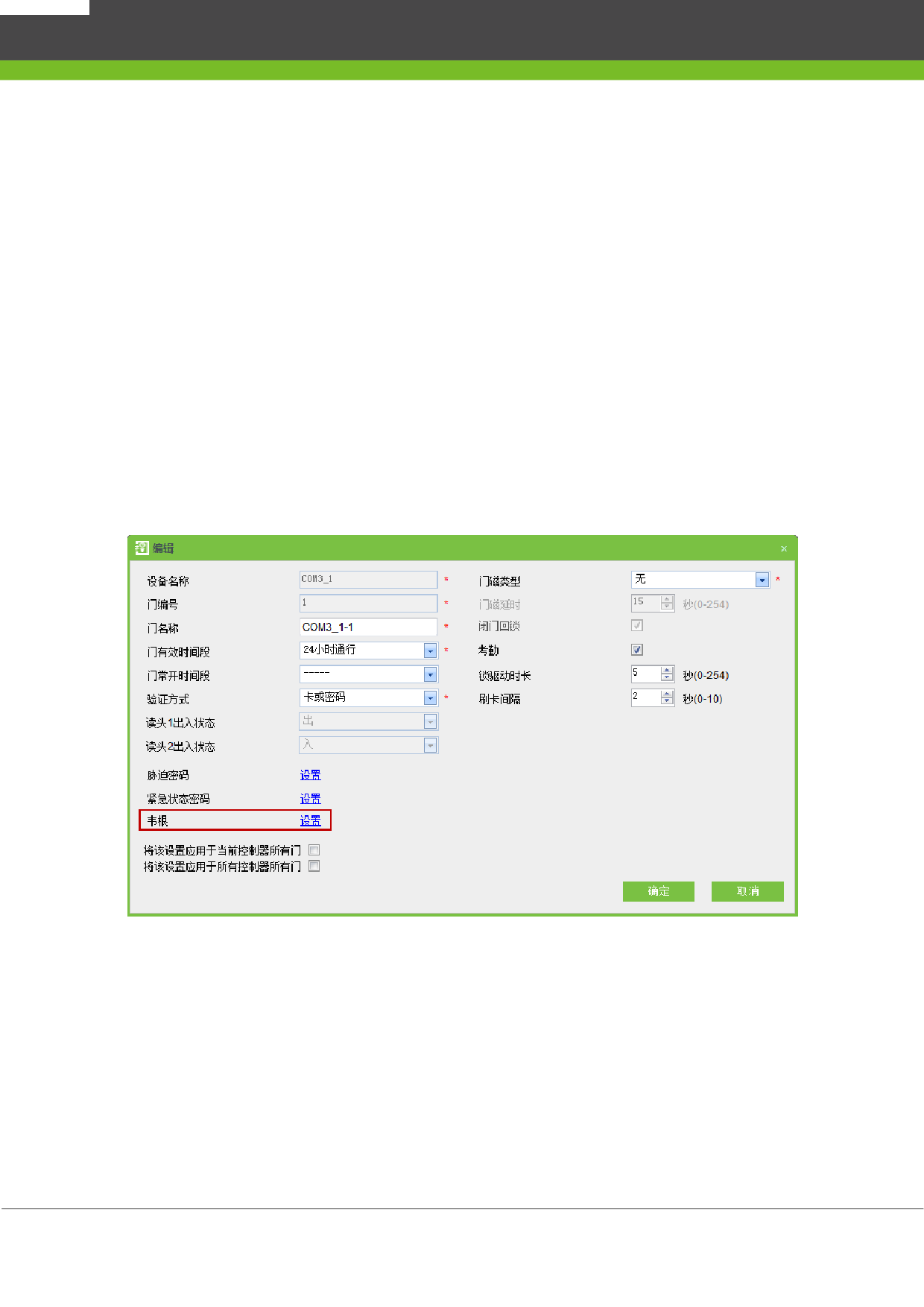 韦根格式与门关联,可以指定每扇门的韦根输入、输出格式。点击【门禁】【门设置】选择需