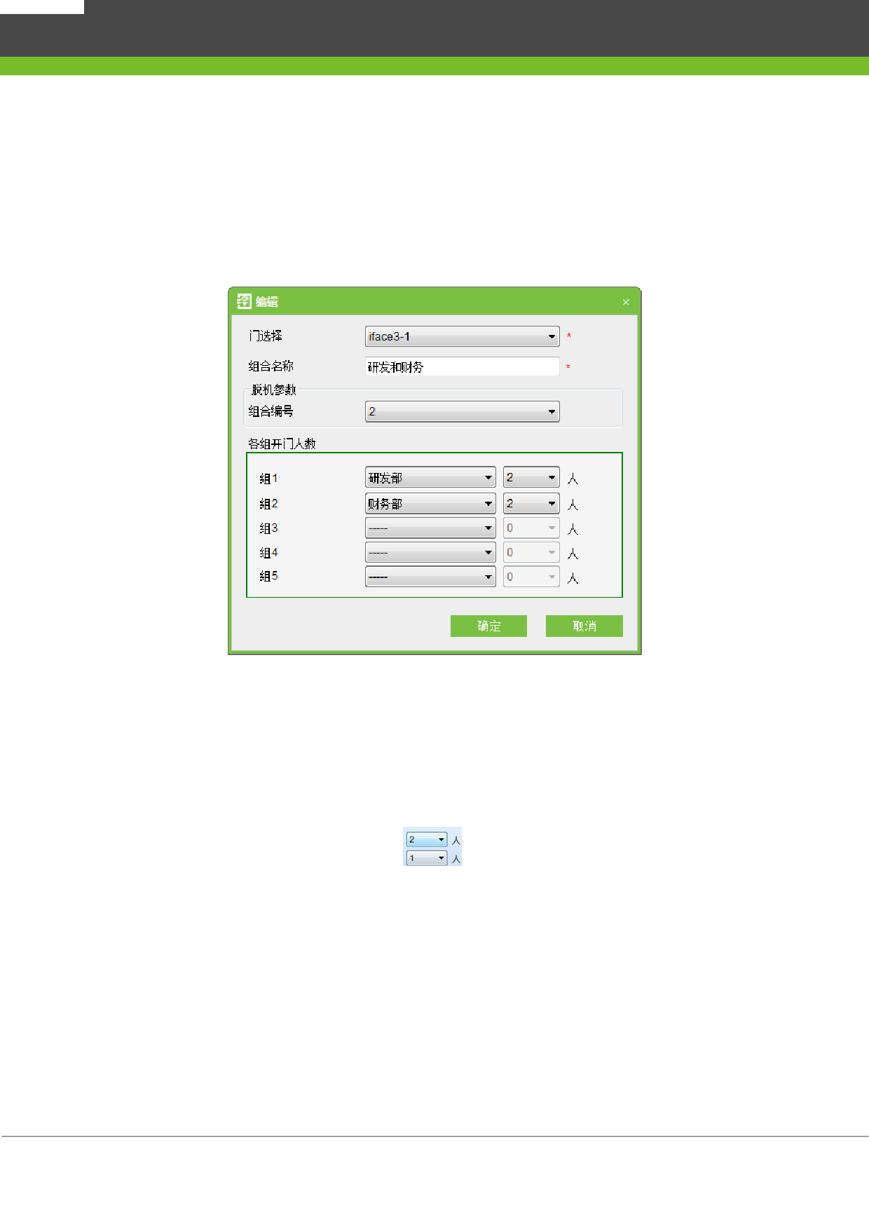 同时开门)或多个组(例如一组的 2 人和二组的 2 人,四个人同时开门)。开门人范围为:1~5 人,如果用户填