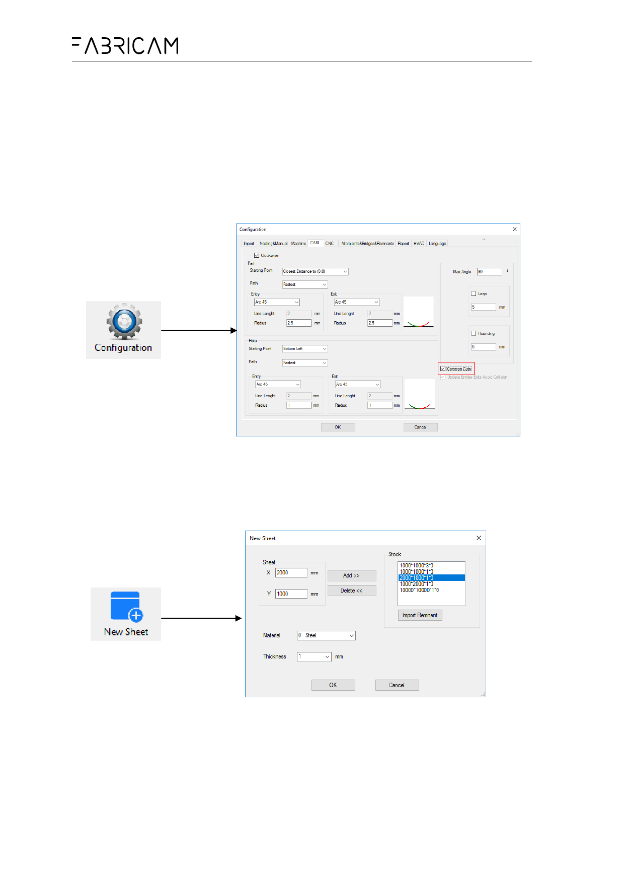 Click on Configuration->CAM->Common Cuts