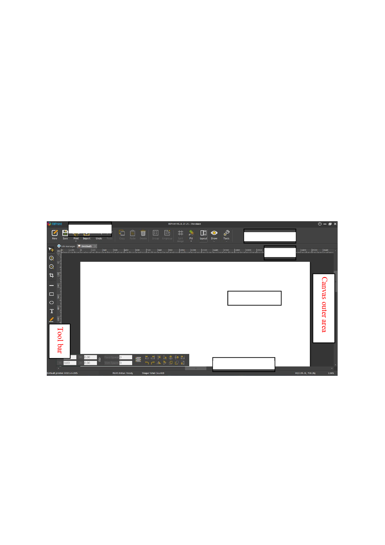 menu bar, the tool bar, the scale area, the canvas area, the area beyond canvas and the prompt