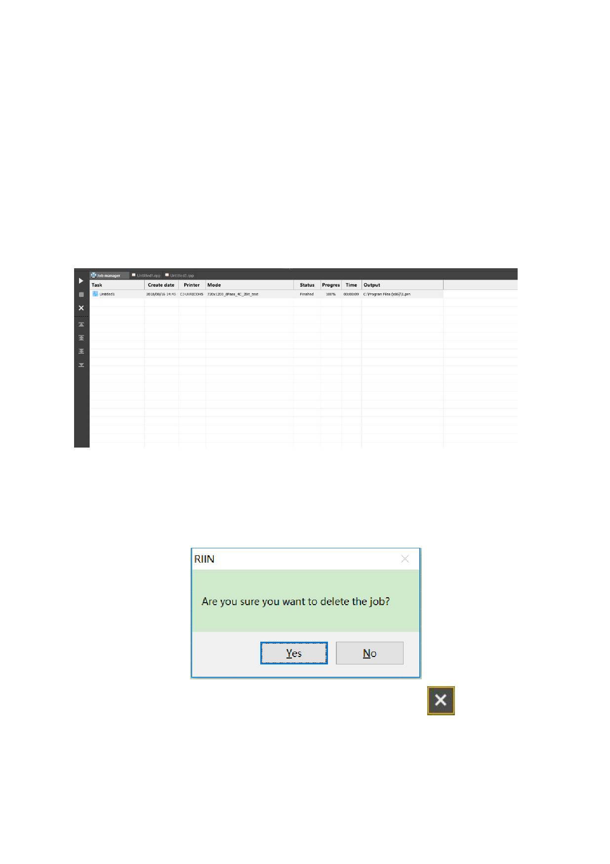the list of printer manager. If you click “no”, the printing task will continue to be shown in