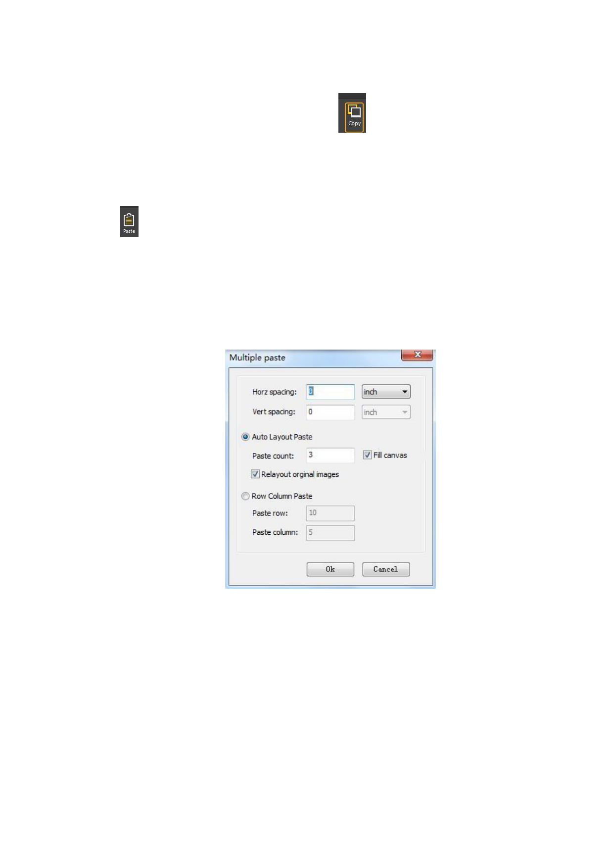 3.Designate the line and row of paste. If you set paste by line and row, the program will