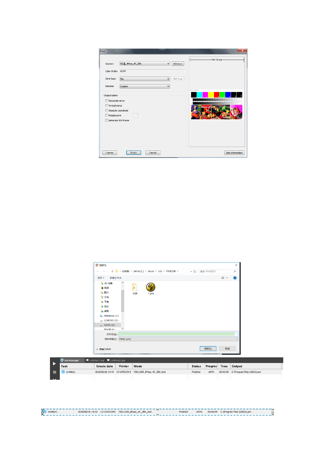 or printing to the network port (output mode: TCP/IP). If the former is selected, PRN file is