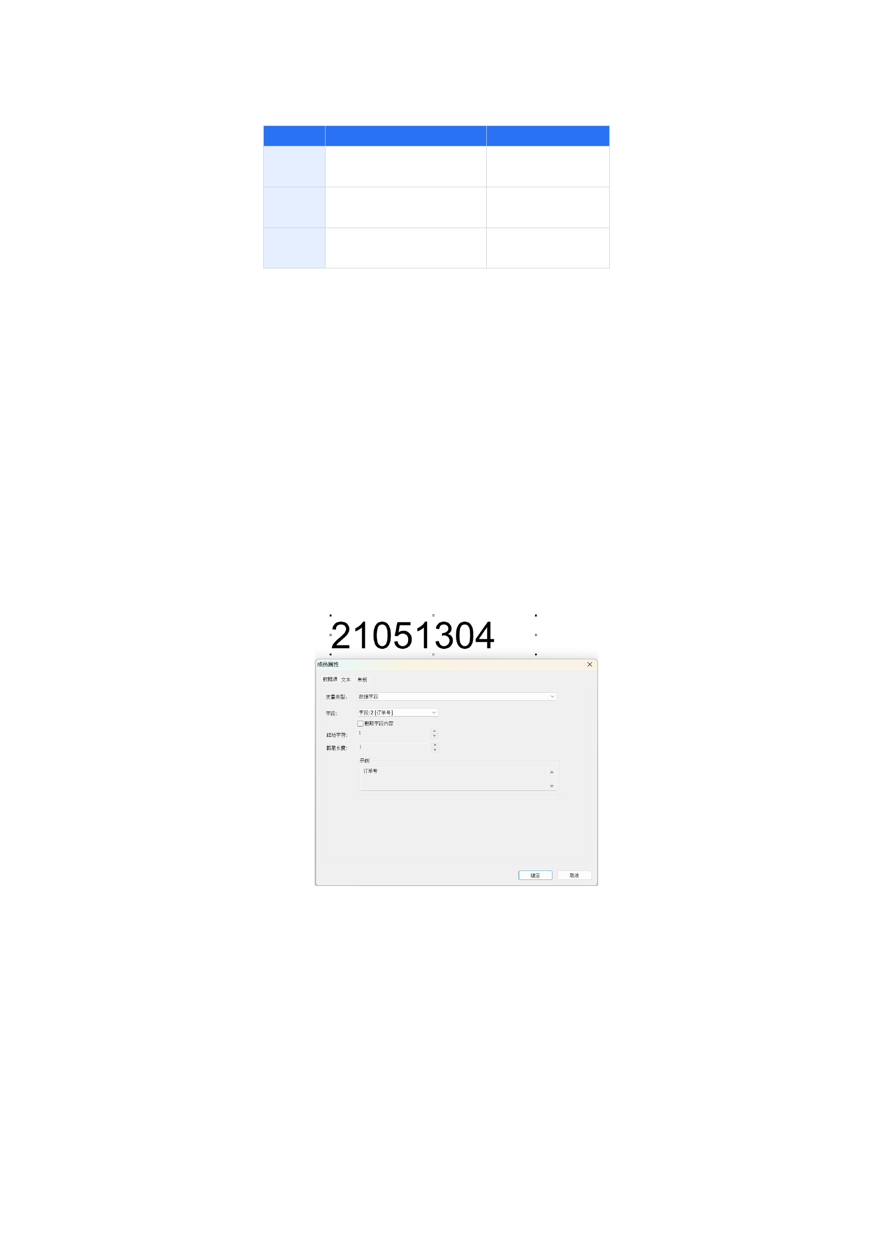 c.如果需要截取该字段内容中的一部分,您可以勾选截取字段长度,设置起始字符和您需要截取的长度。您可以在示例中预