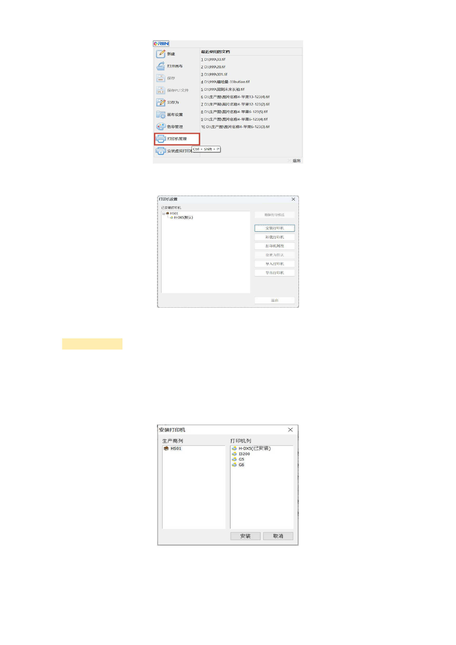 如果已安装打印机列表中没有符合您要求的打印机,您可以通过自己添加这台打印机。点击 【安装打印机】按钮,程序