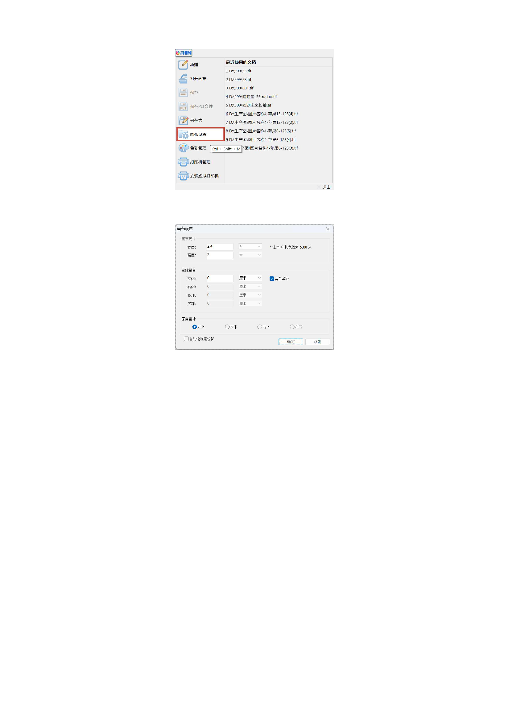 程序弹出一个画布设置弹窗如下图所示,在此可以完成画布尺寸及画布留边的相关参数设置。