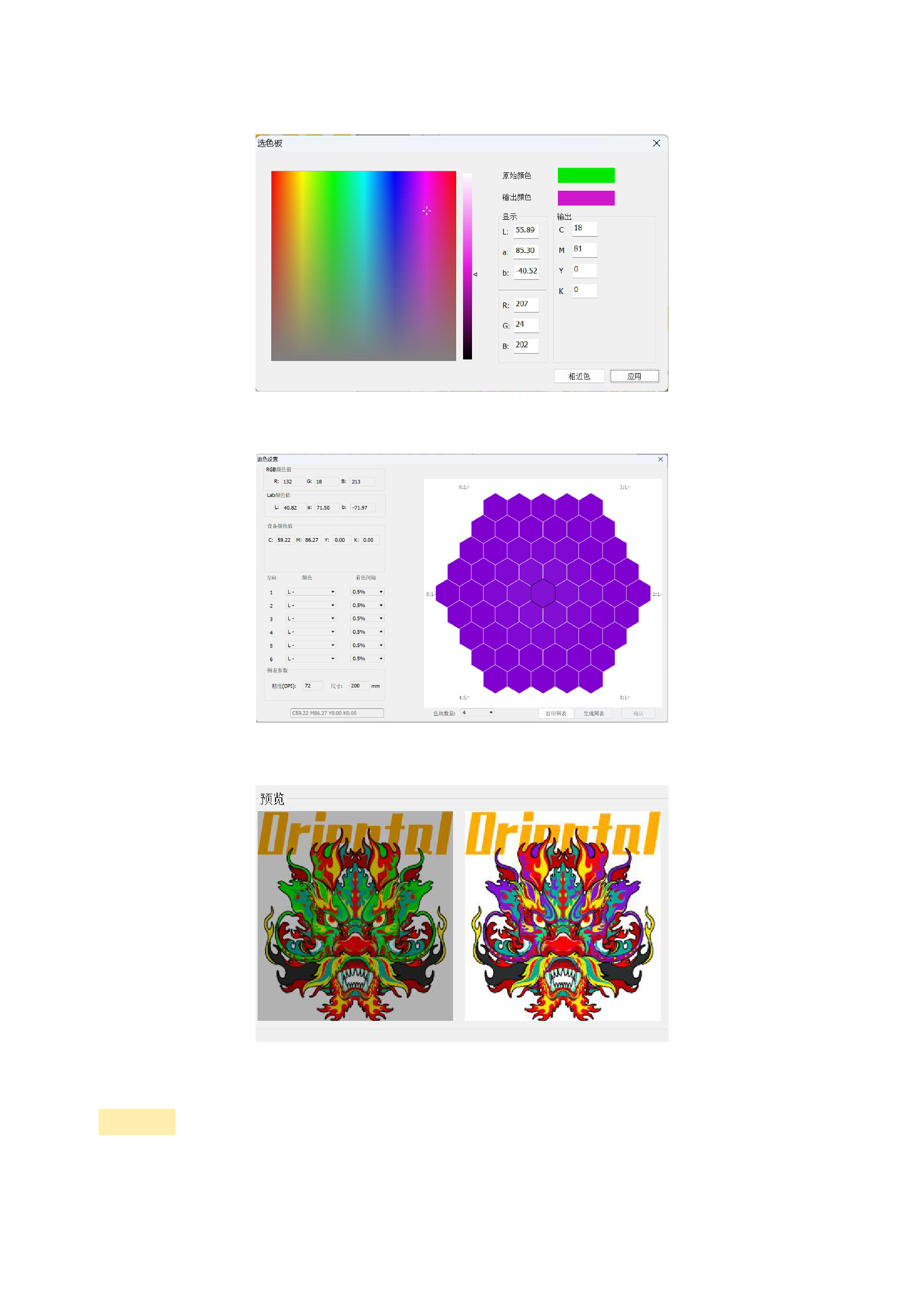3)替换颜色值可在相近色中打印色块辅助确认,您可以点击