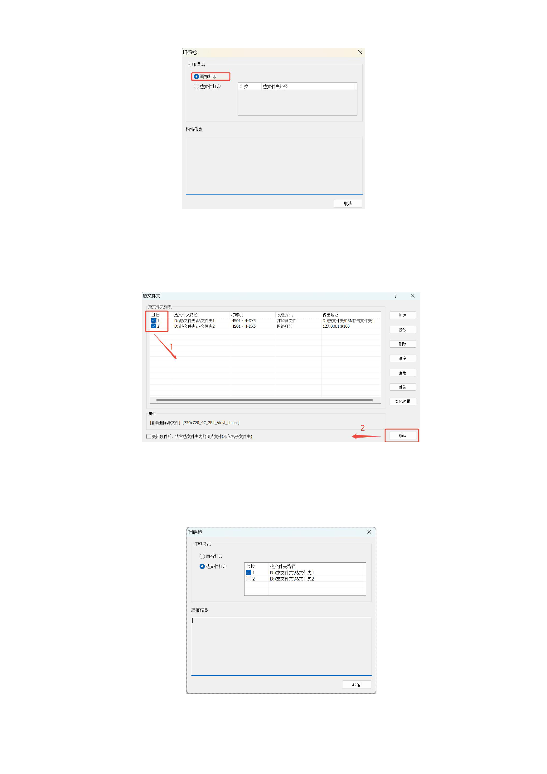 打开扫码枪,您可以在热文件夹列表中查看到已被监控的热文件夹。您可以选择监控多个已启动的热文件夹,扫码后,