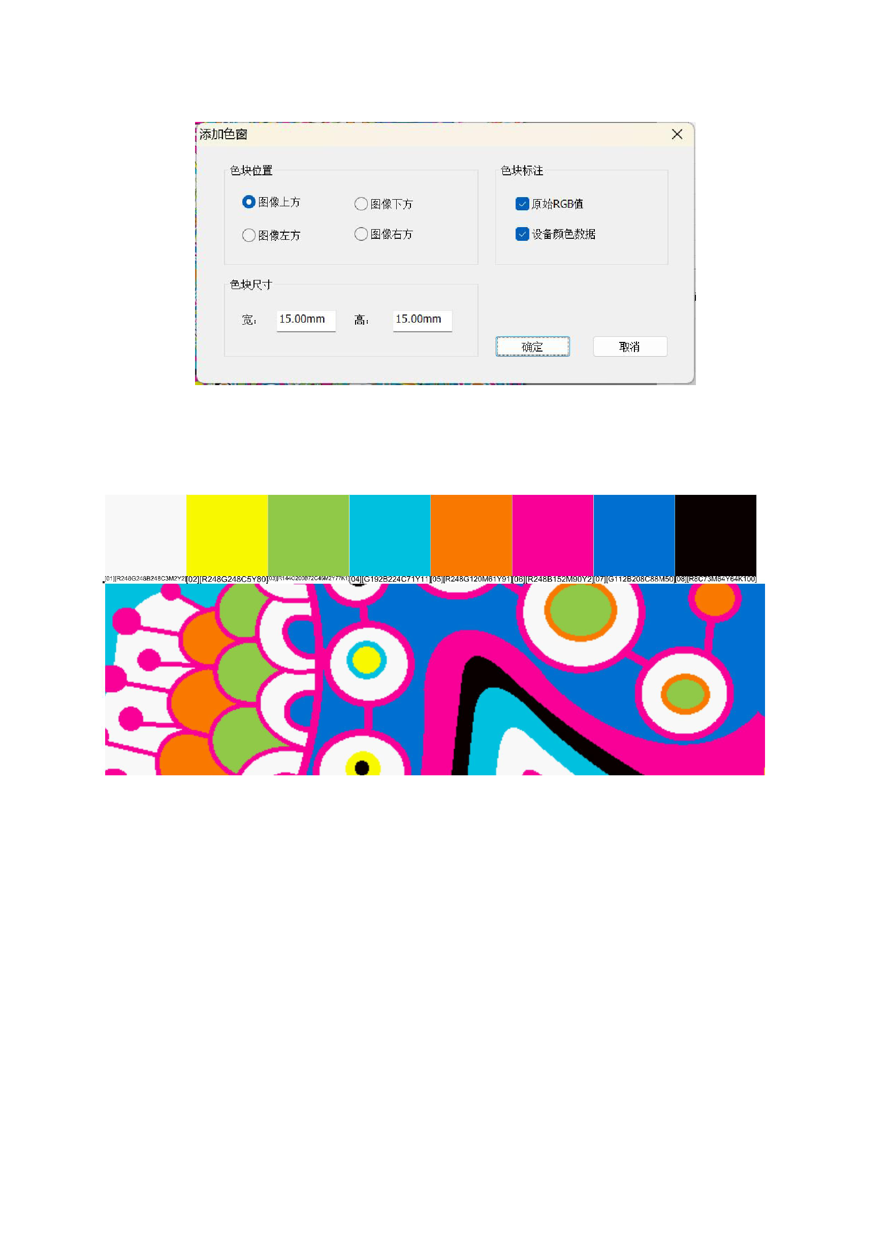 支持设置色窗的尺寸位置和标注的数据,设置完成之后点击确定即可。