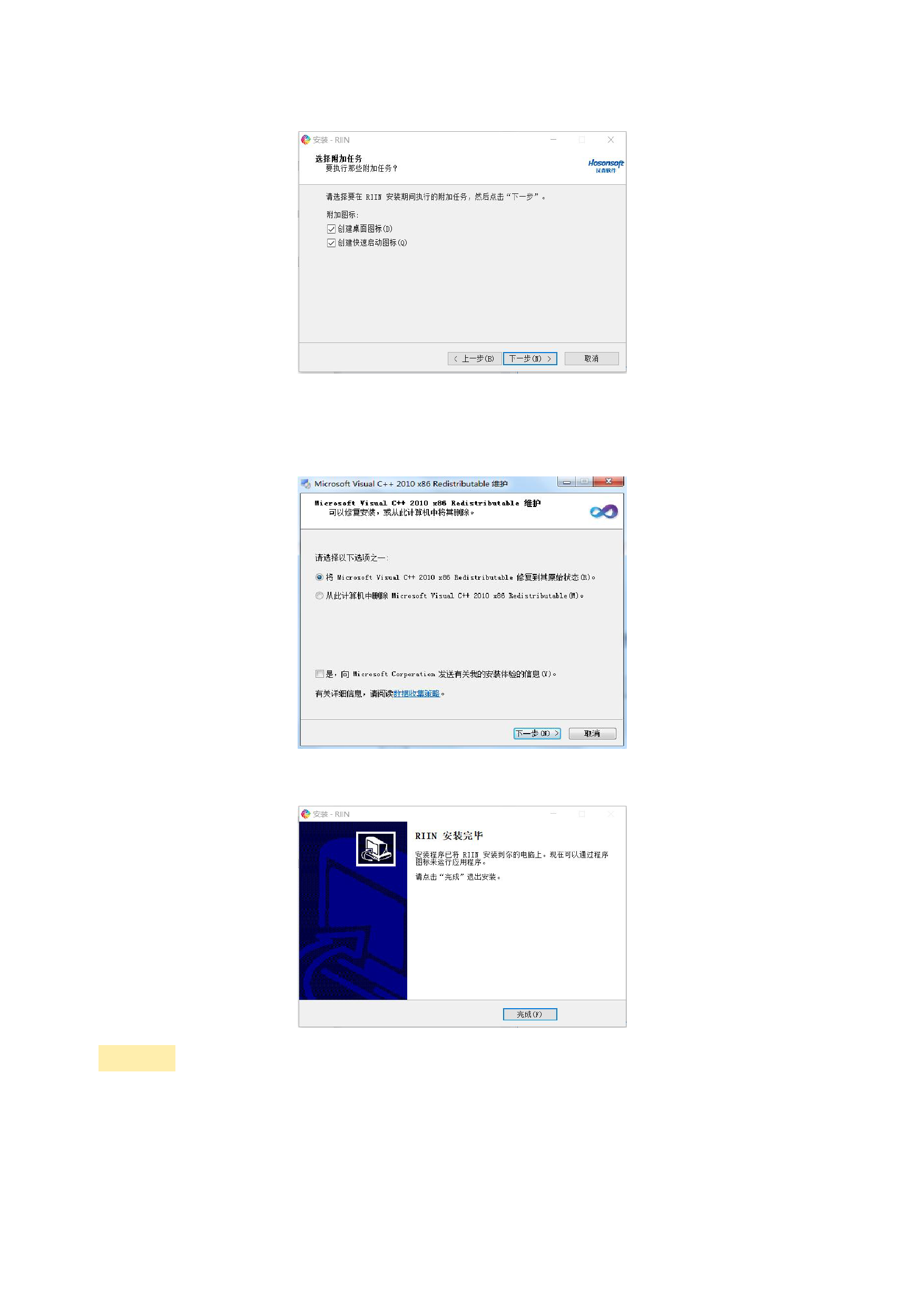 如果您第一次没有安装成功,建议您先把之前安装的 RIIN 软件卸载后再进行第二次安装。