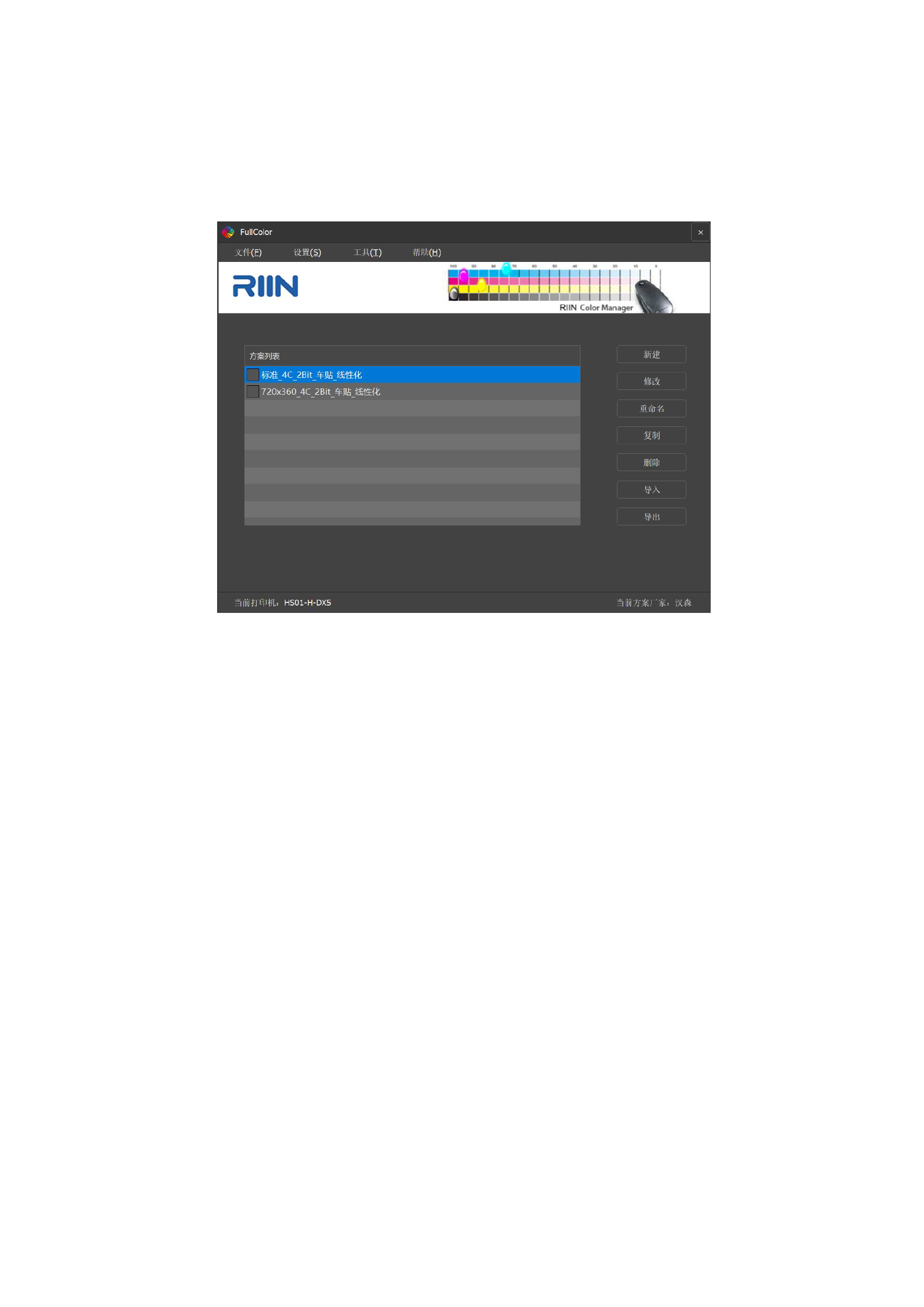 在【锐印菜单栏】中选择【色彩管理】选项,进入色彩管理界面: