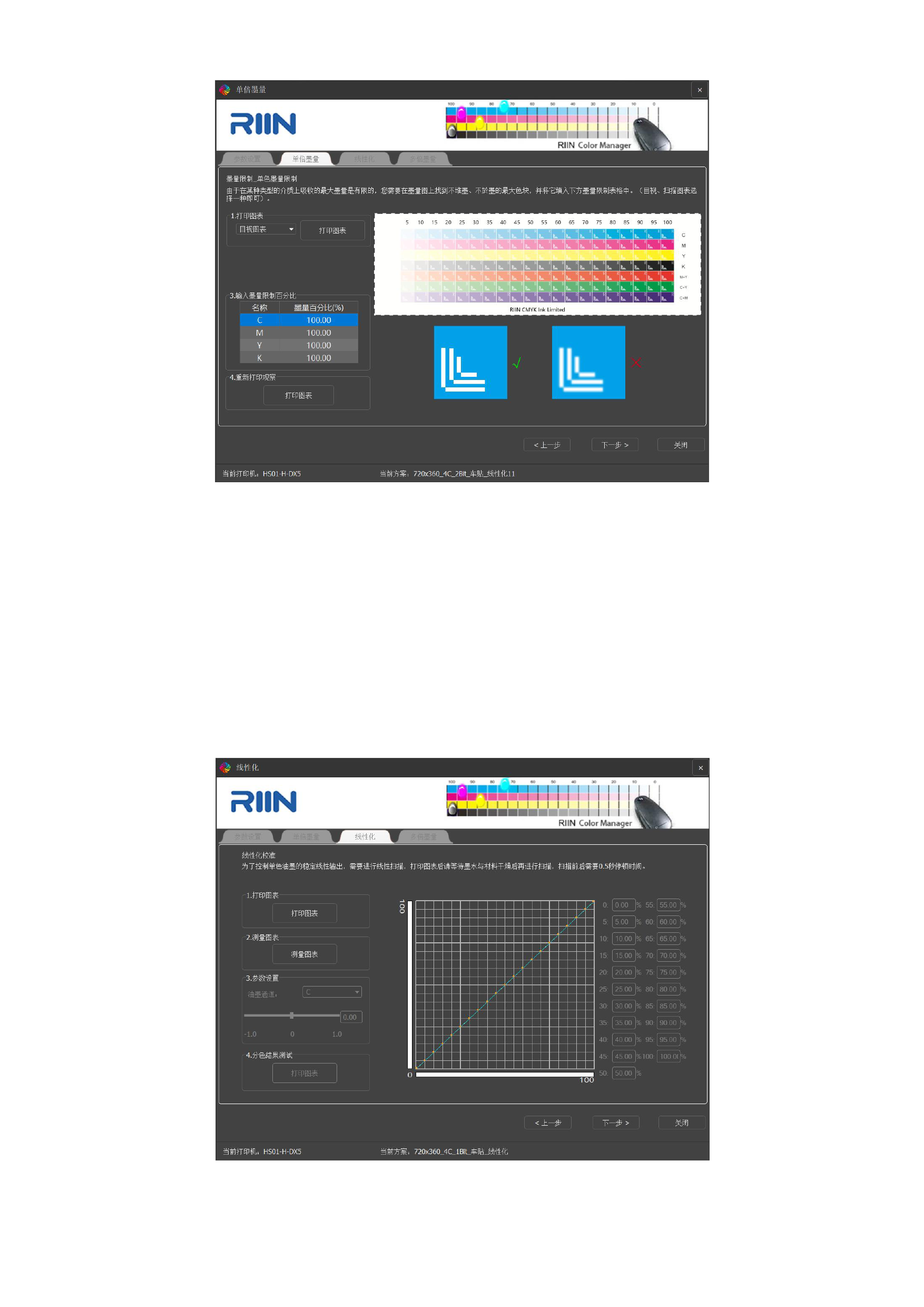 2)根据检测图中每个通道的实际墨量情况来分别调节该通道的墨量百分比,如果某个通道墨量太浓的话,则需要对该通