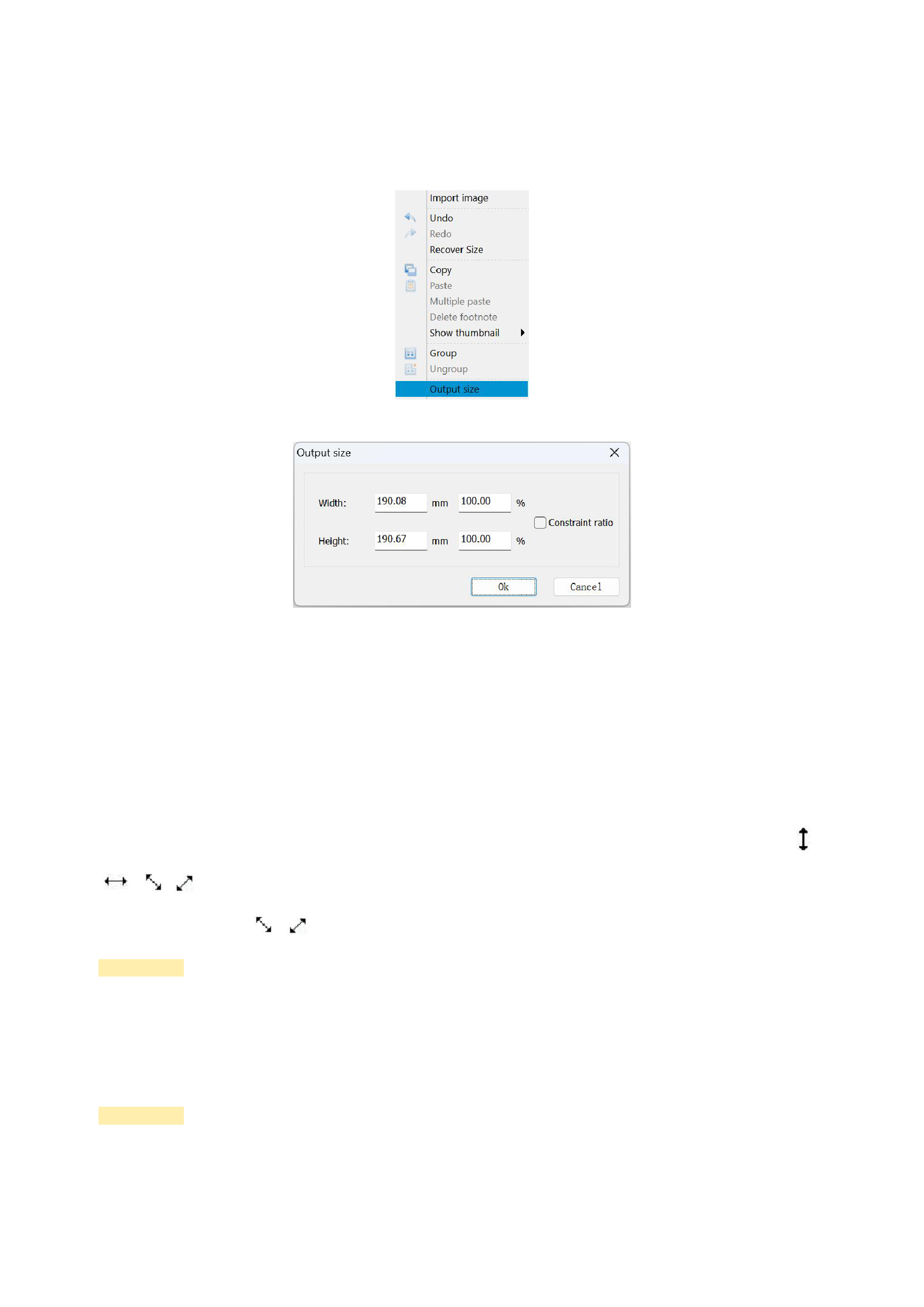 2)In addition, you can also adjust the approximate output size of the image by using the mouse:
