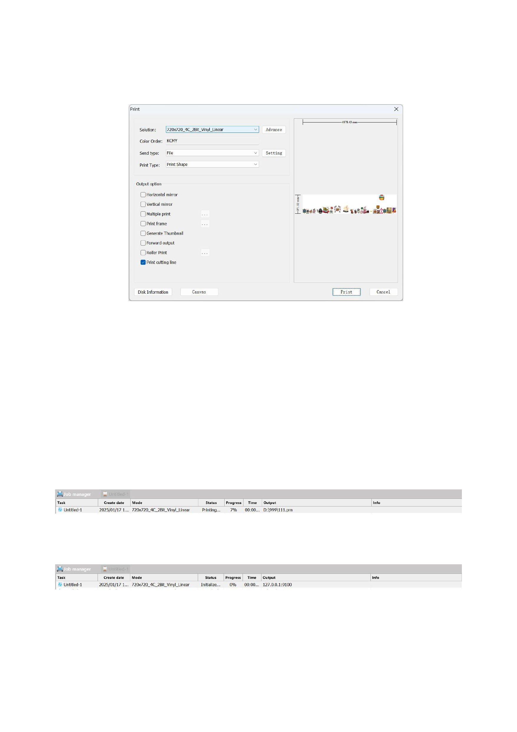 2)Set printing parameters according to your needs. The sending method can be selected as [File] or [TCPIP]. Choosing to