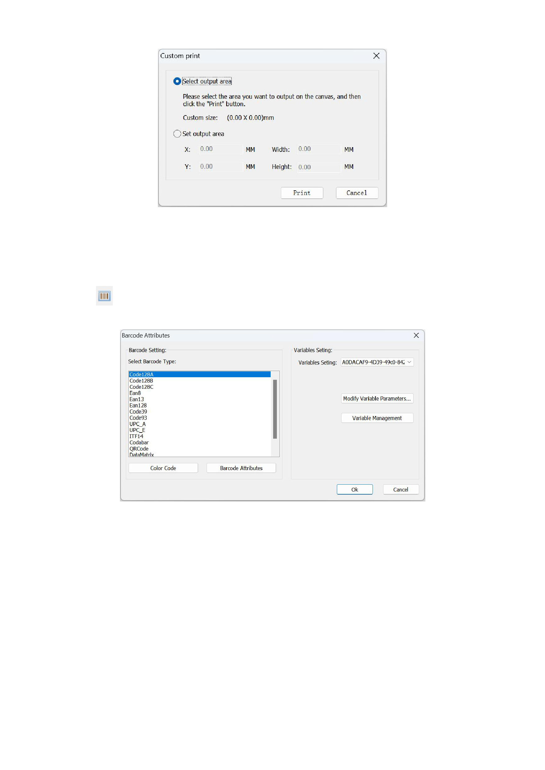 the following barcode attribute interface will appear: