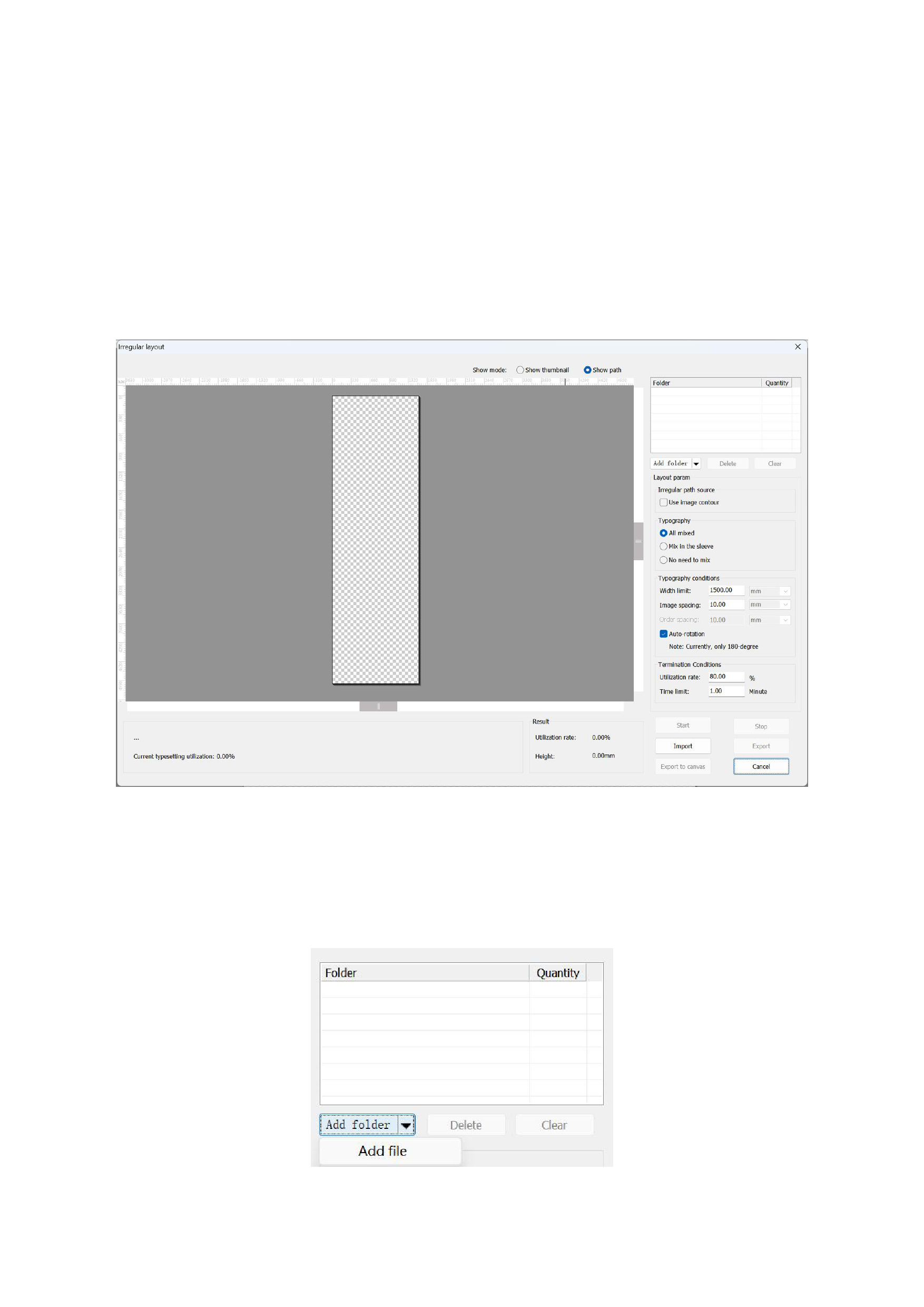 RIIN supports material-saving typesetting for irregularly shaped images. You can choose to display thumbnails or borders, and