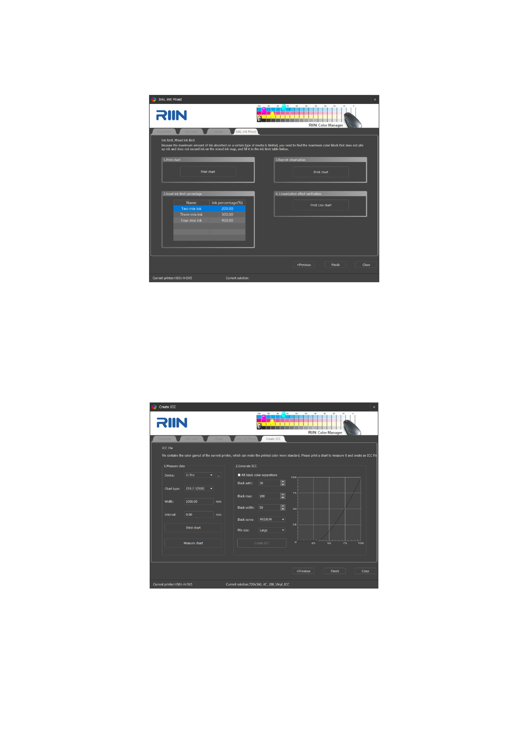 curve production process. After the multicolor ink volume step, the ICC creation step will be entered.