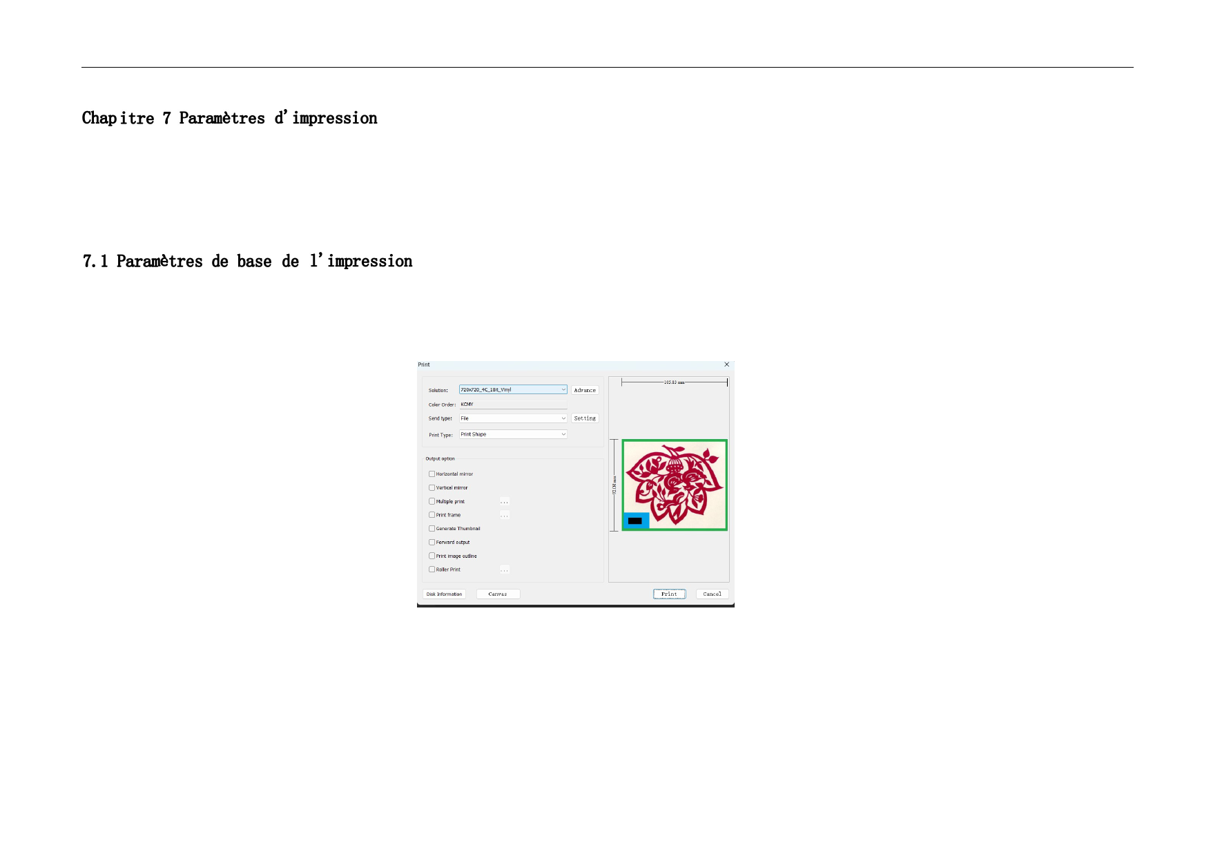 Vous pouvez ici défin ir les paramètres de l'impression concernée :