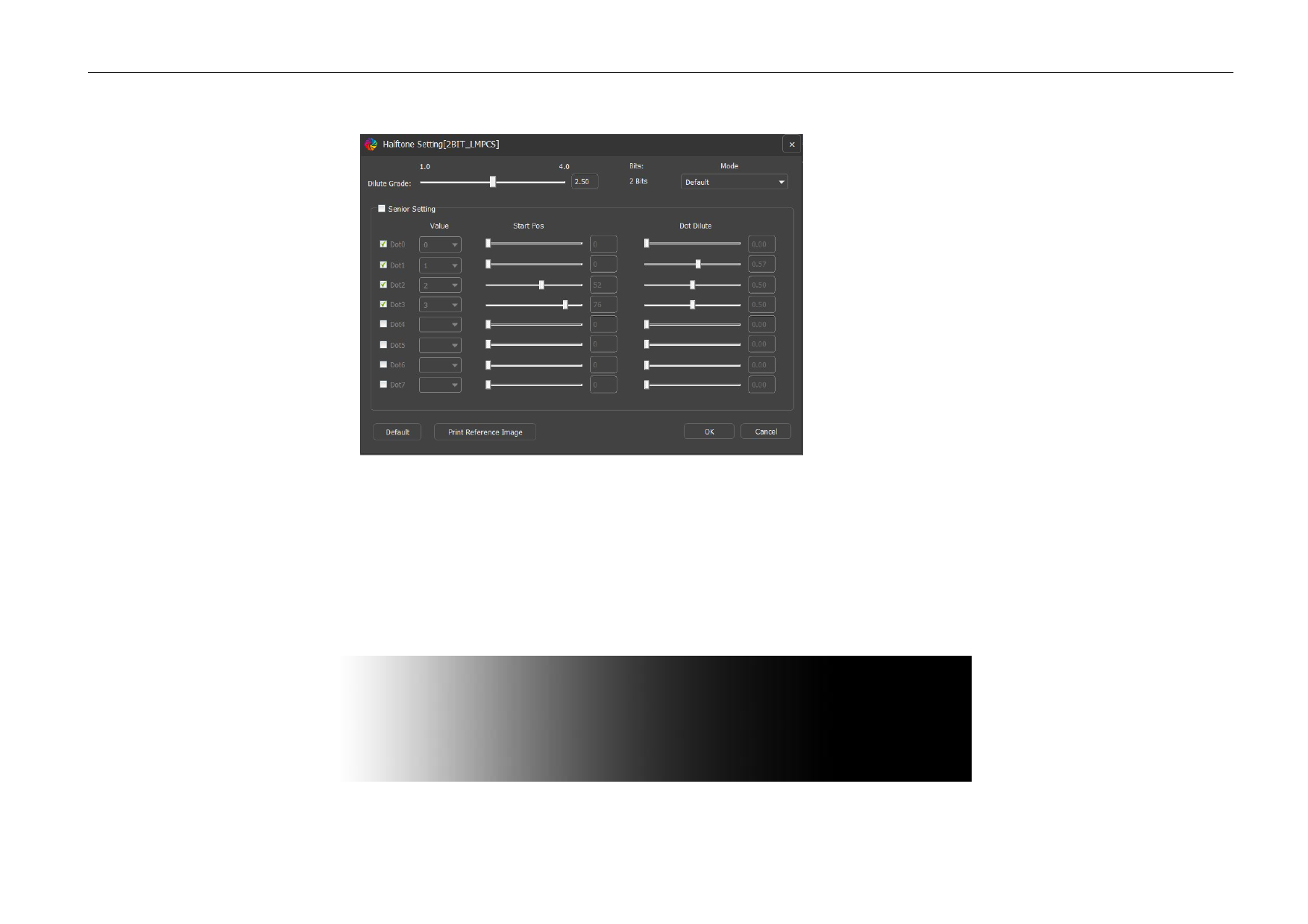 La valeur de dilution du point est le degré de dilution lors du passage de la concentration du point de 0 % à 100 %,