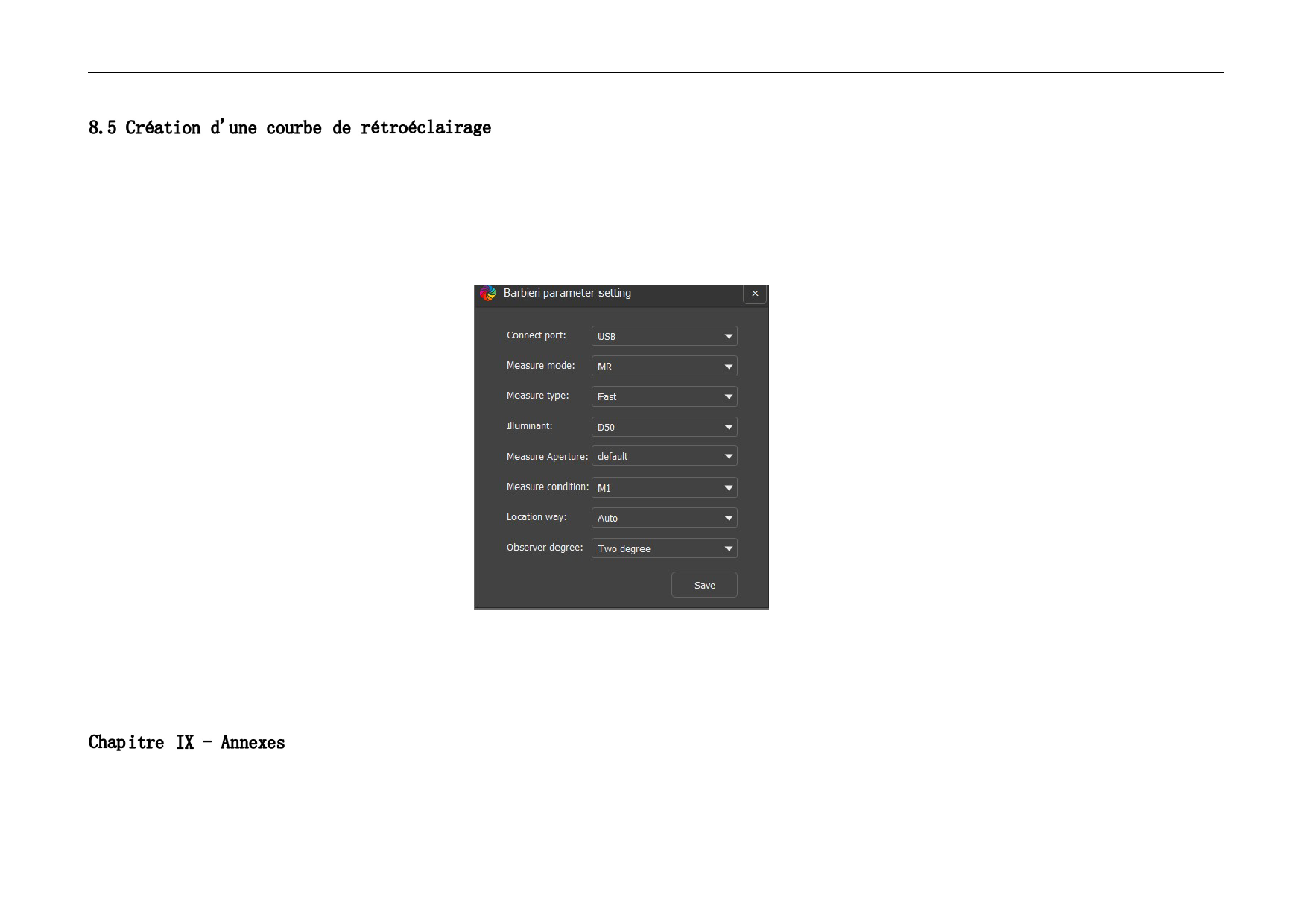 Sélectionnez Barber i dans le nouveau dispositif de mesure de la courbe et sélectionnez MT dans le mode de mesure de