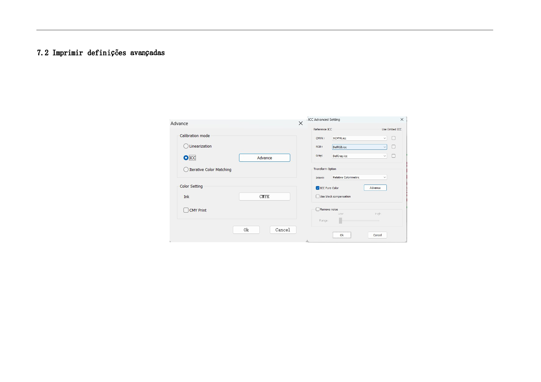 imprimir imagens, é necessário marcar a caixa Ativar ICC aqui, e existem fontes de referência ICC correspondentes para