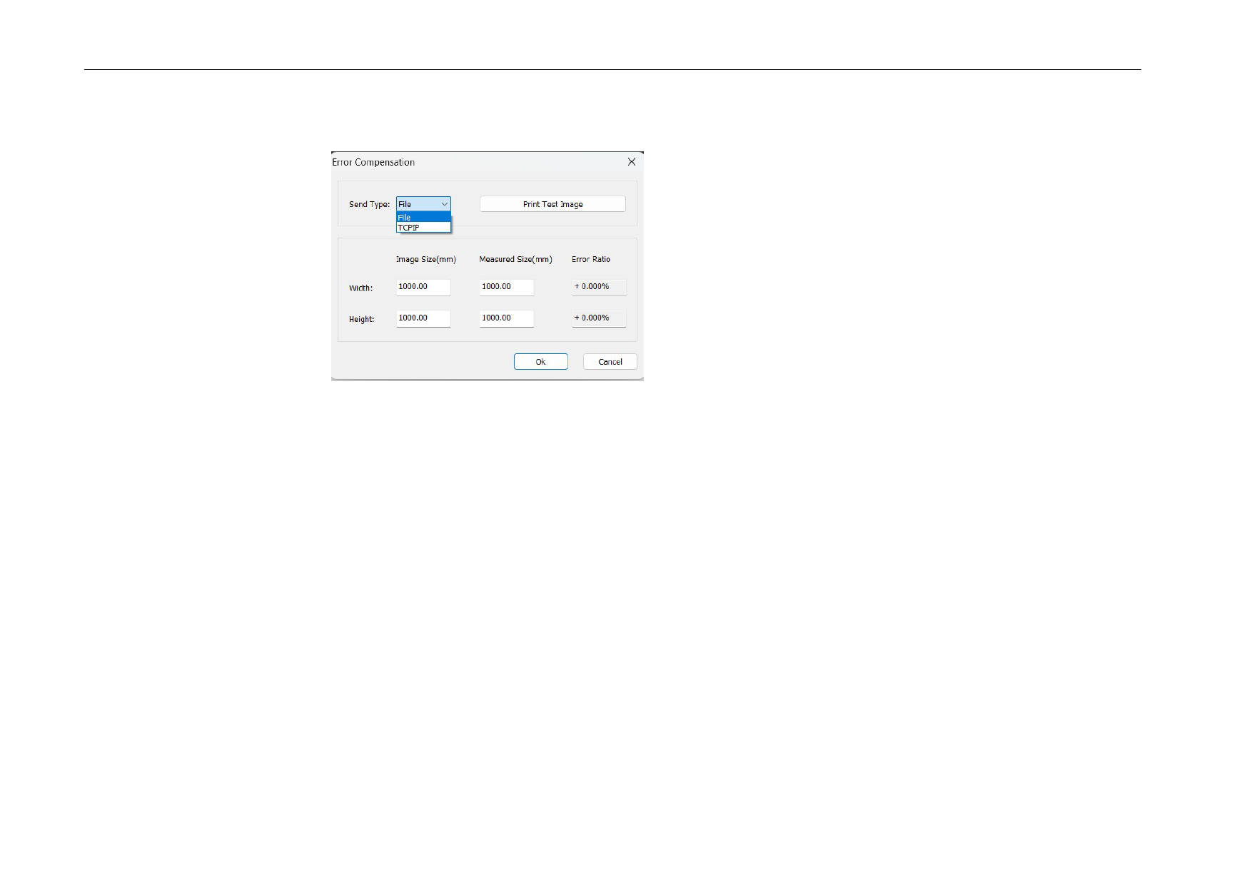 (2) Definir o tamanho do gráfico de teste a ser impresso e definir o tamanho pretendido do gráfico de teste.