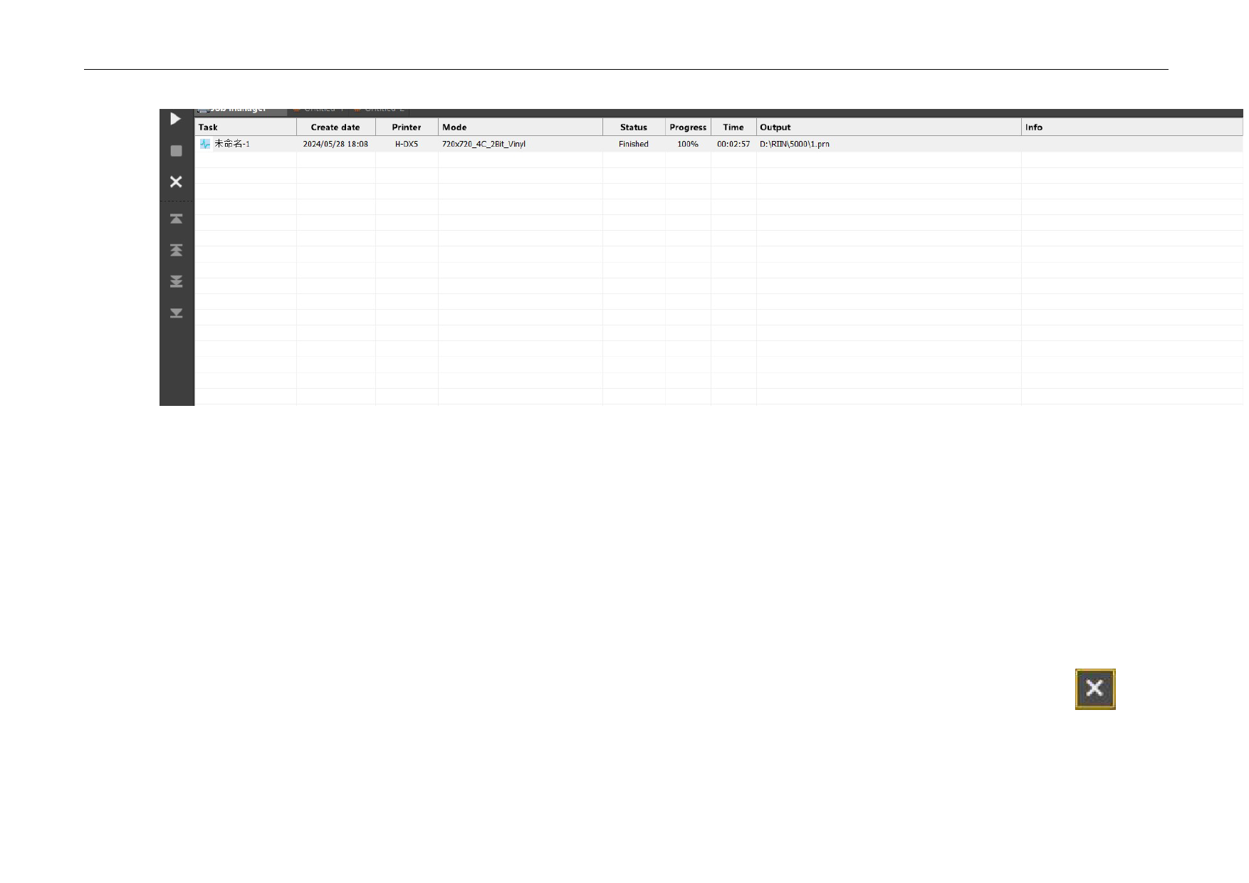 eliminar un trabajo de impresión, seleccione la tarea, haga clic en la parte izquierda del botón "Eliminar"