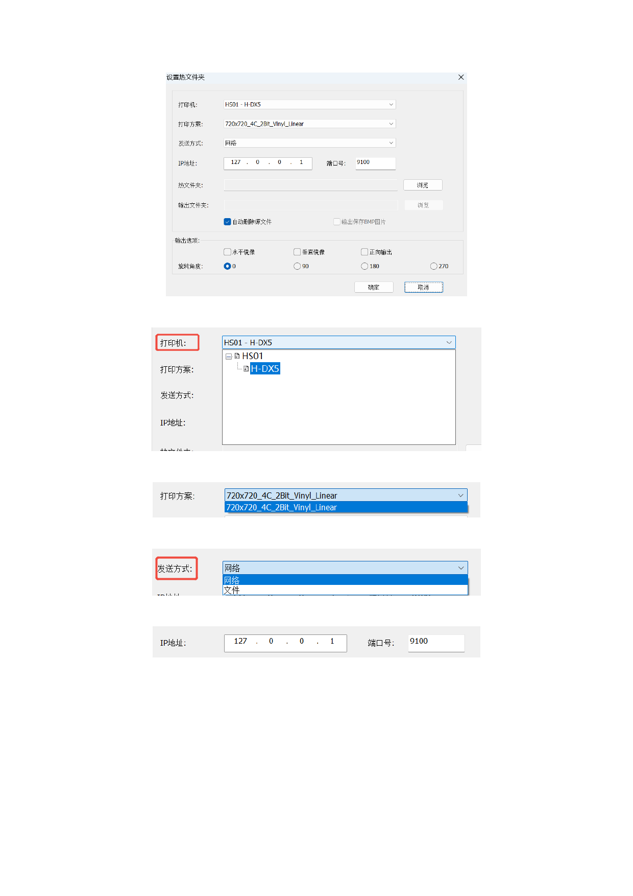 )如果您选择使用网络方式进行发送,需要填写打印机对应的