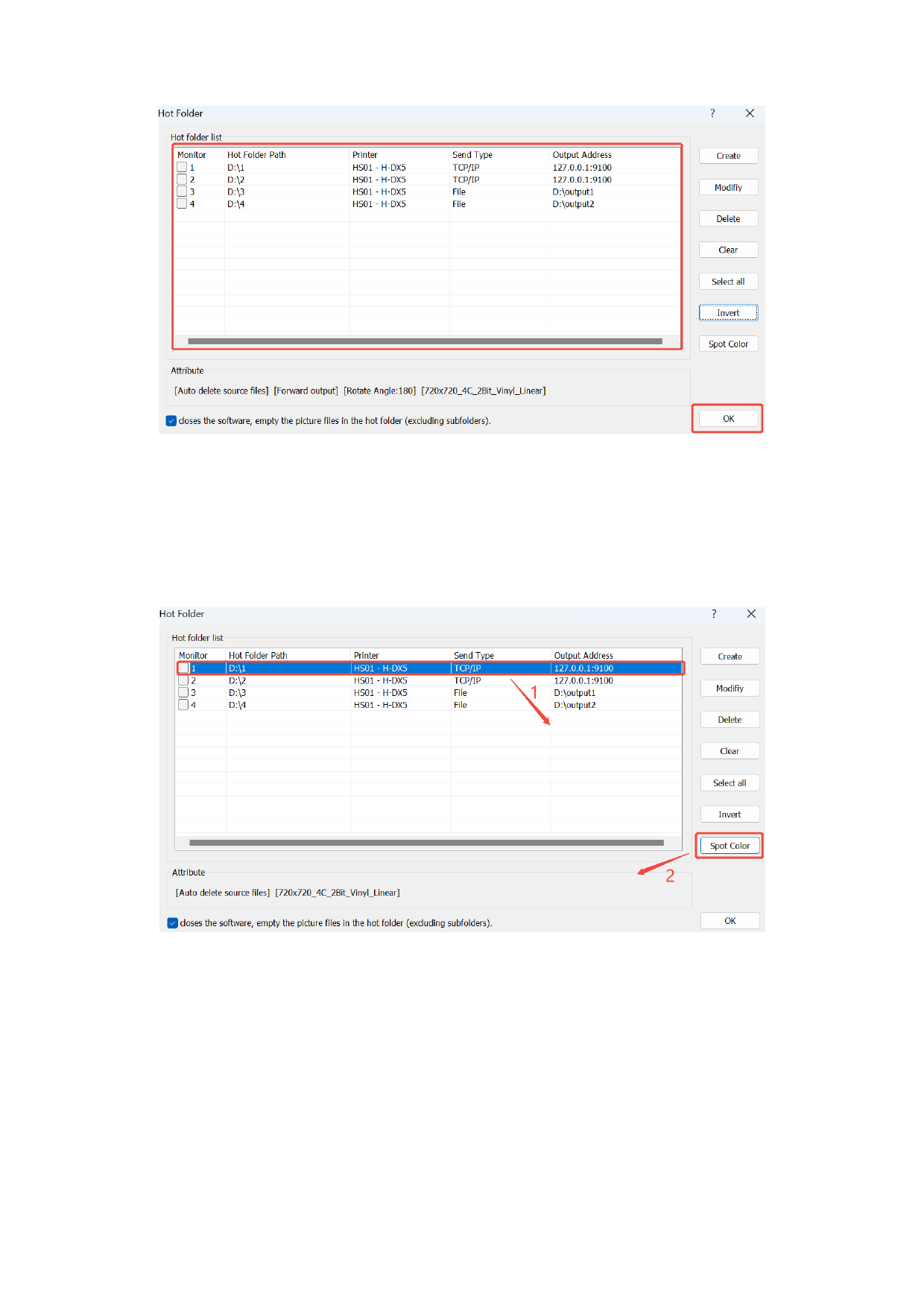 Select the Hot Folder entry for spot color settings. Note that this feature requires activation