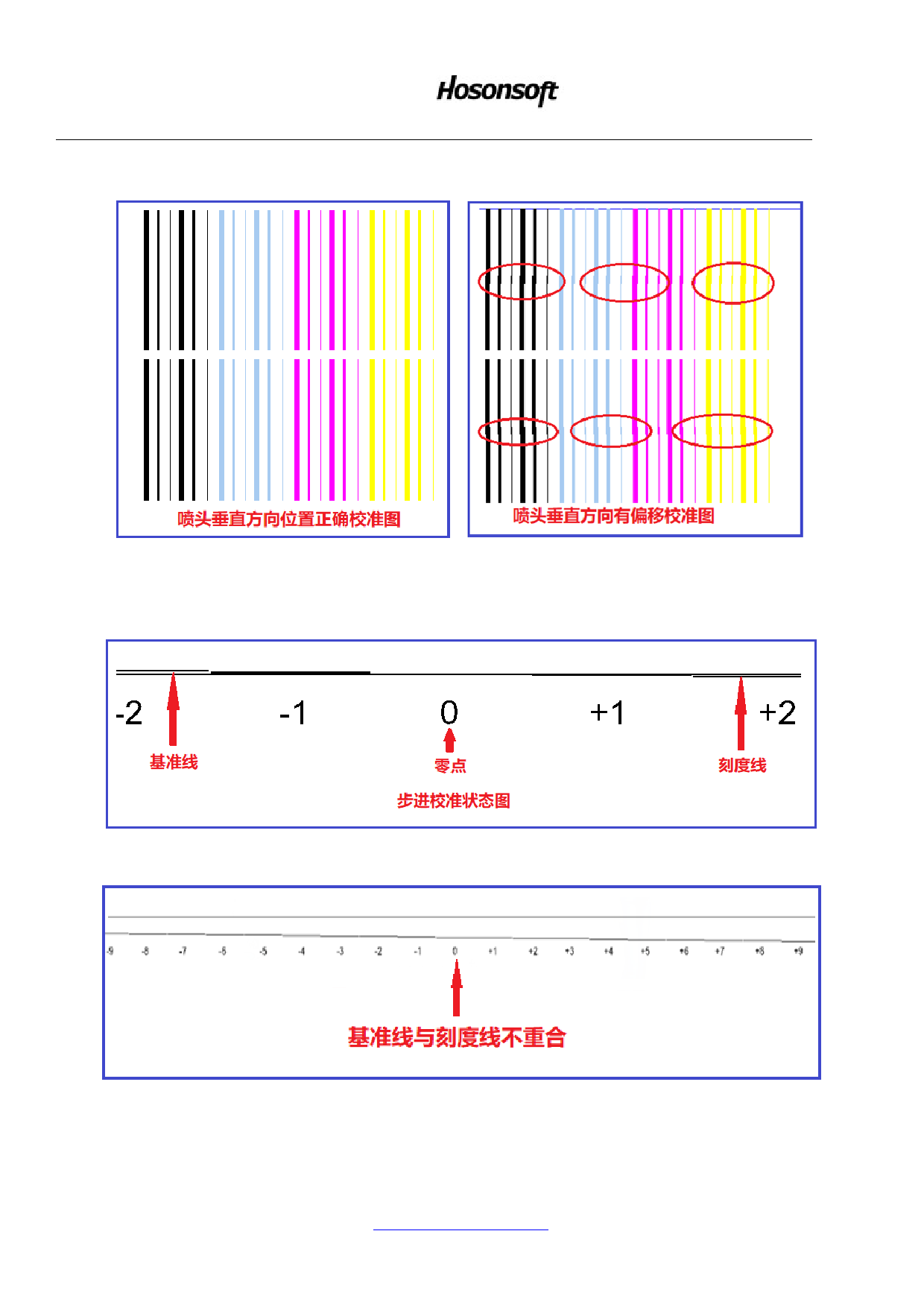 上图需要调整,调整窗口如下图,输入调整值,点击计算,重新打印校准图,直至基准线与打印线在 0