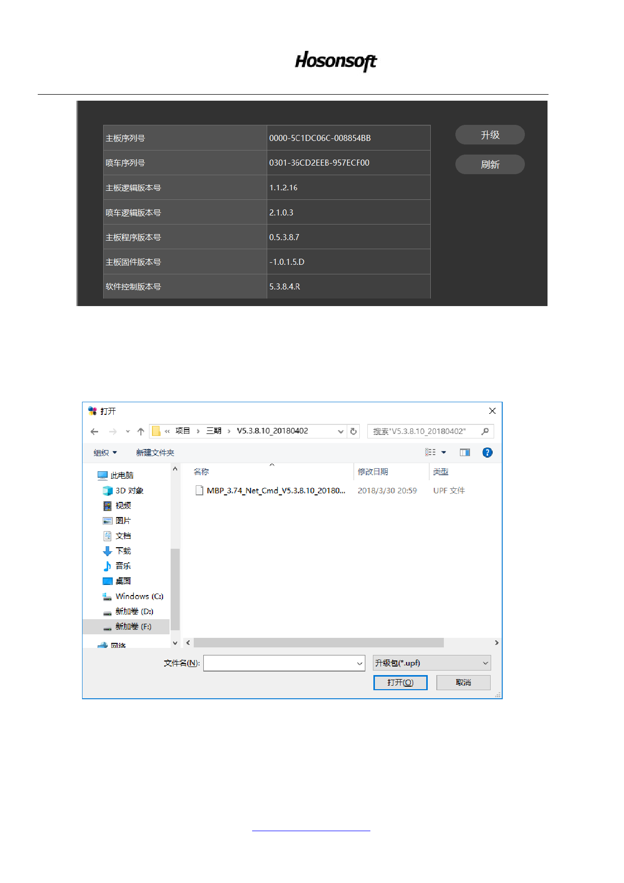 选择要升级的程序,再点击“打开”按钮,即进入到升级窗口,点击“确定”即进入升级,升级完成会