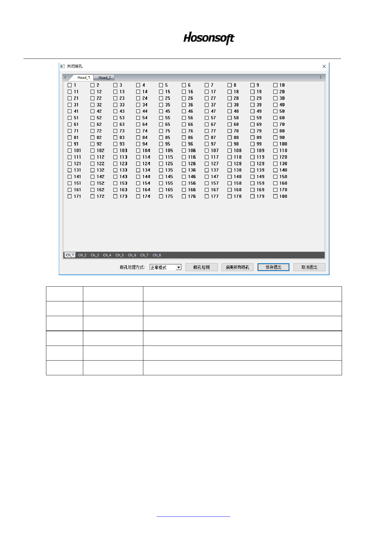 喷头所有喷孔启用/关闭选择