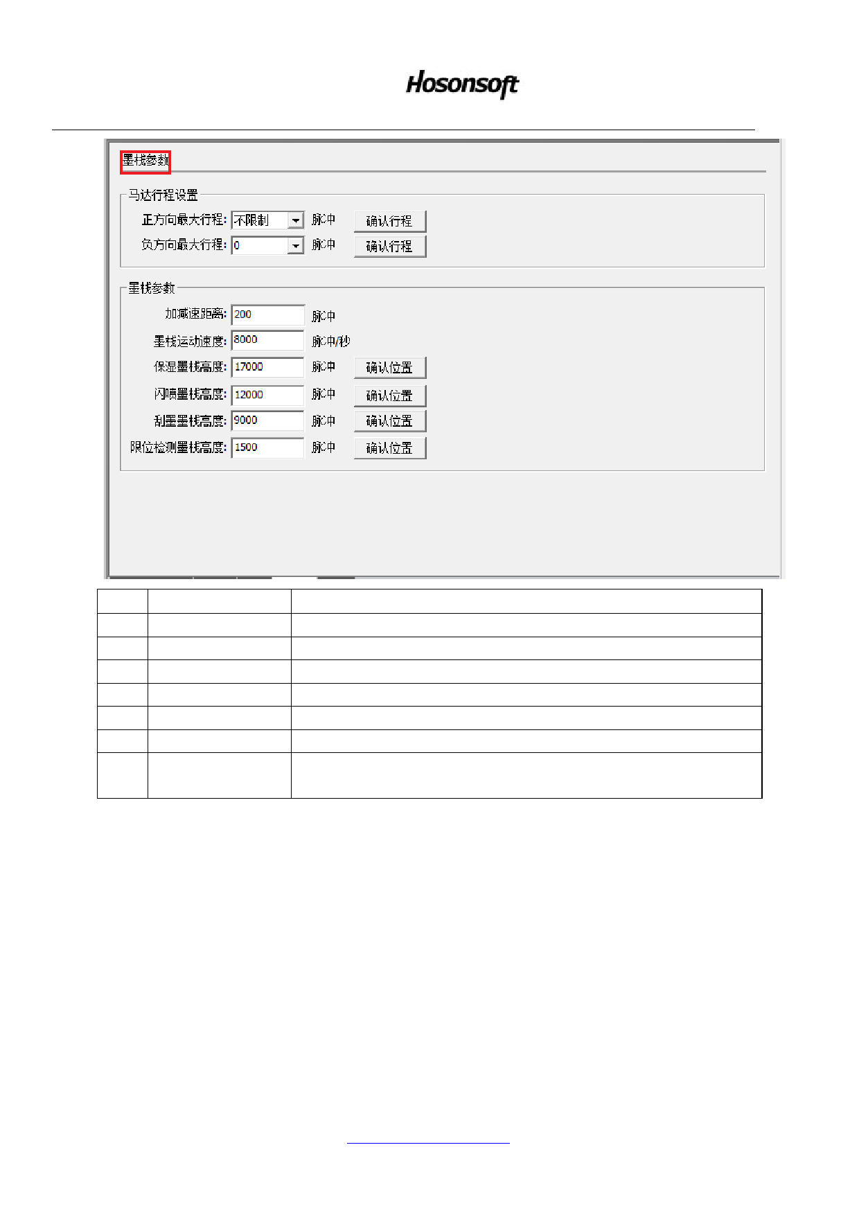 进入限位检测时,墨栈的高度(高度尽量小,但必须确保离开限位位