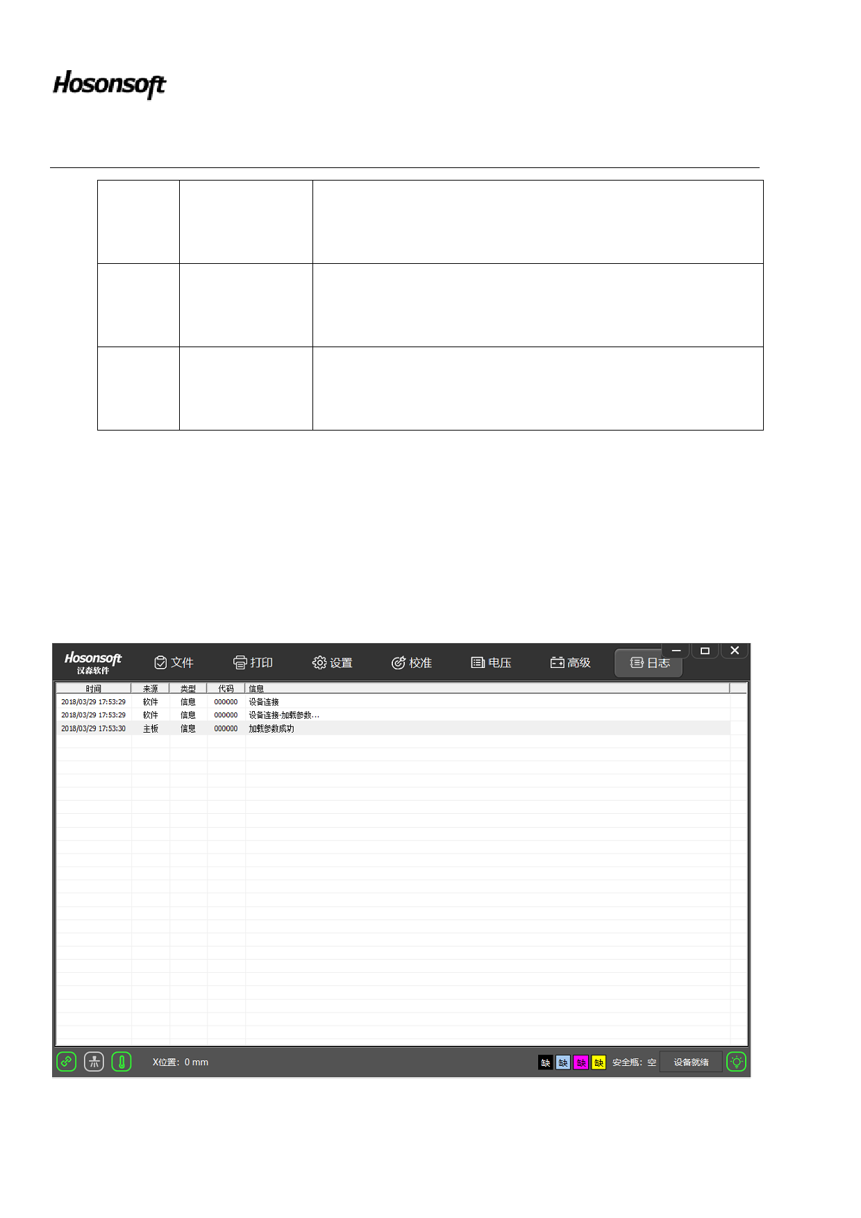 Click the log button in the lower right corner of the printing software to enter the log window, as shown below: