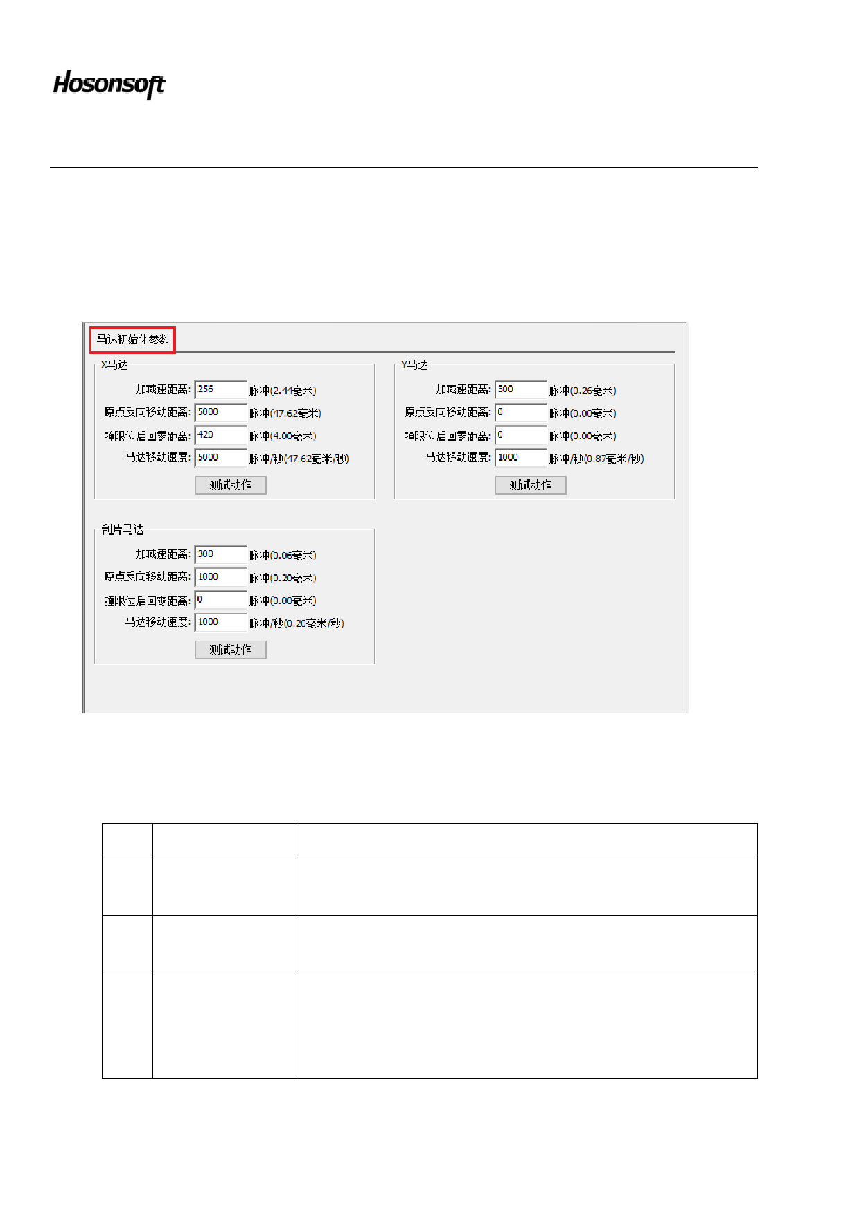 Perform the motor's action parameters during power-on initialization, as shown below: