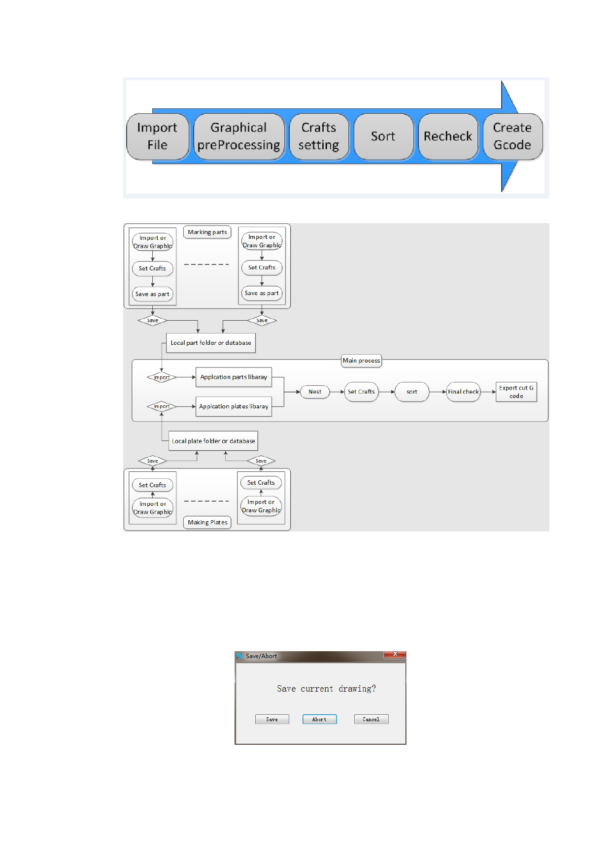 To select “Save” will save current drawing file. To select “Abort” will not save