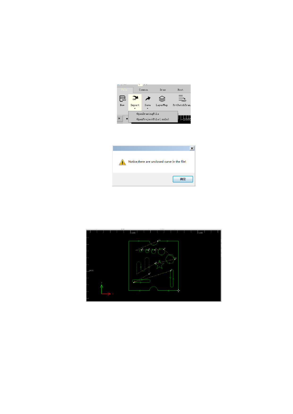 The software supports to import files of dwg、 dxf、itf format (format of file