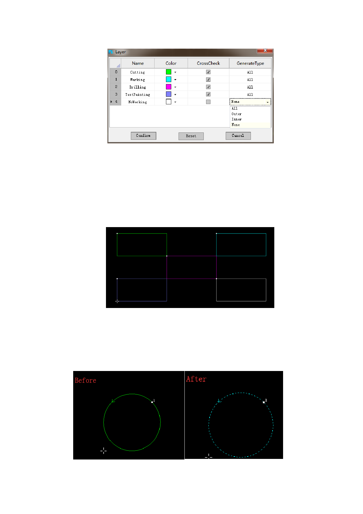only the inner contour of the part will be processed. “None” means neither the outer