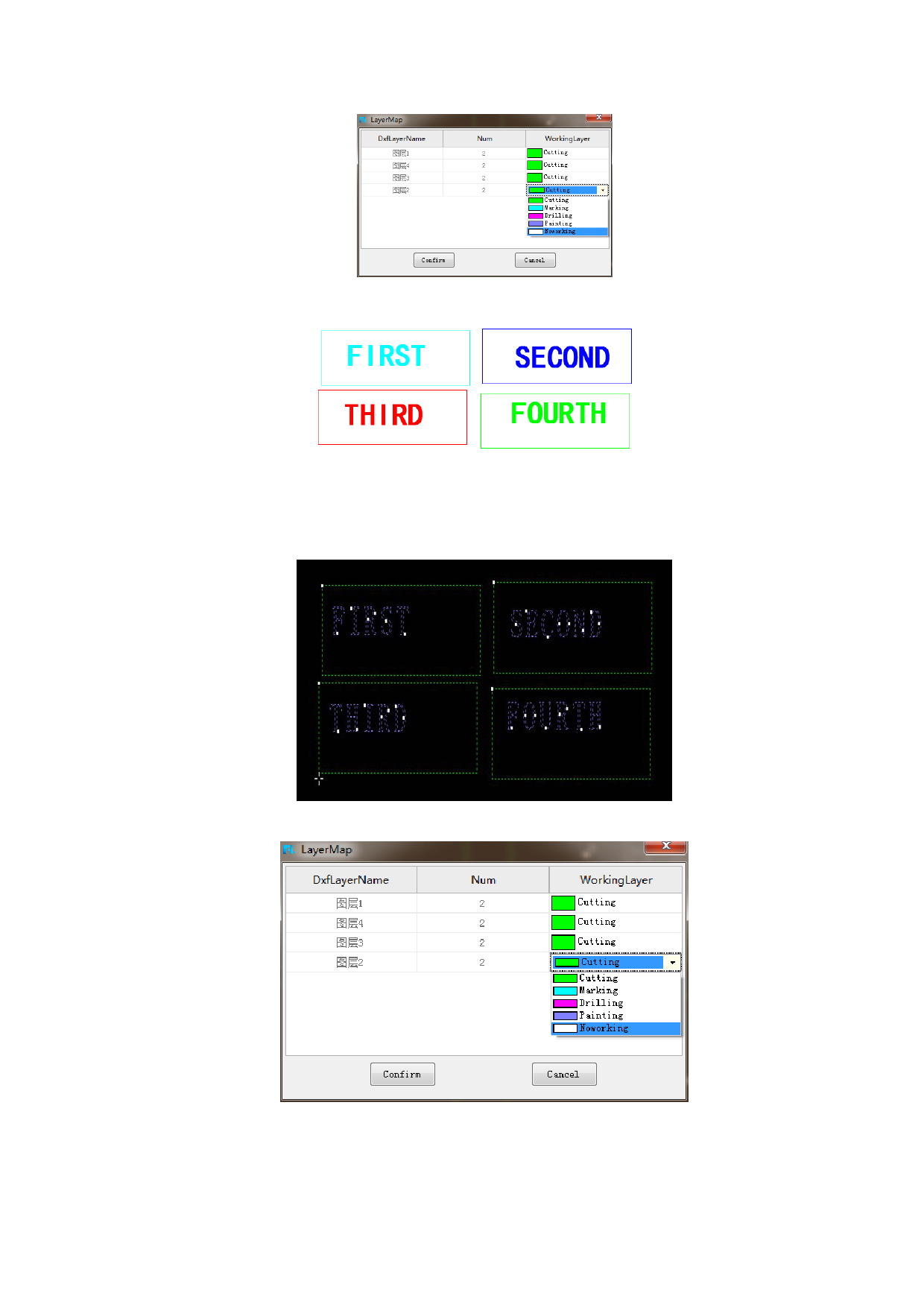 As shown above, there are four layers in CAD, respectively are layer 1, layer 2,