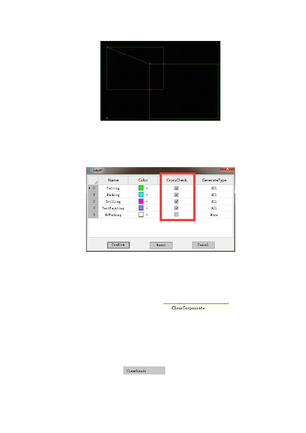 “Clear” button. Clear compensation is to remove cutting compensation. It just needs