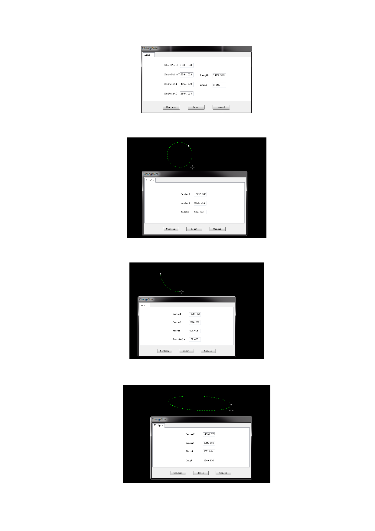 The size change of ellipse can set the parameters as follows.