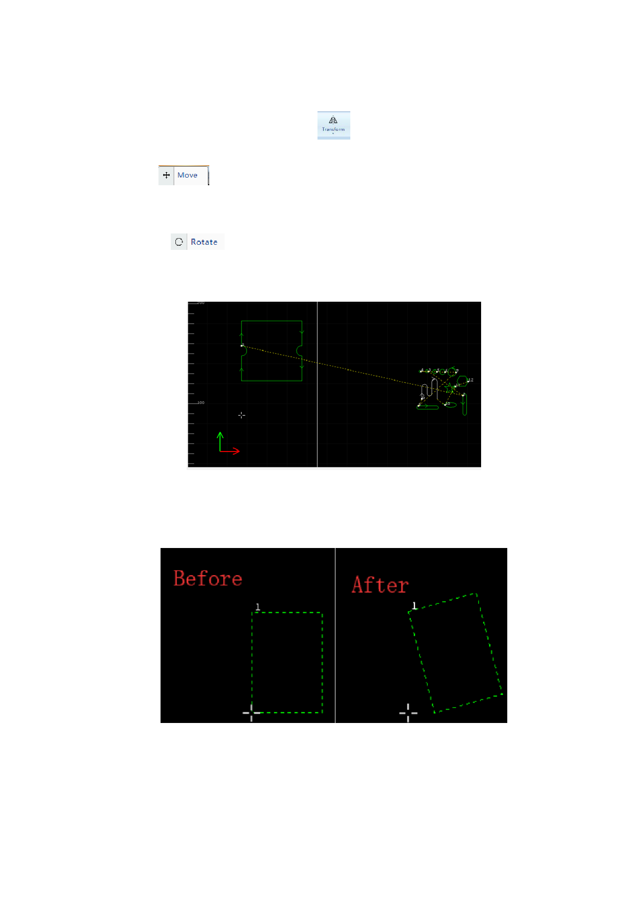 Case: the following rectangle will be rotated according to the relative line.