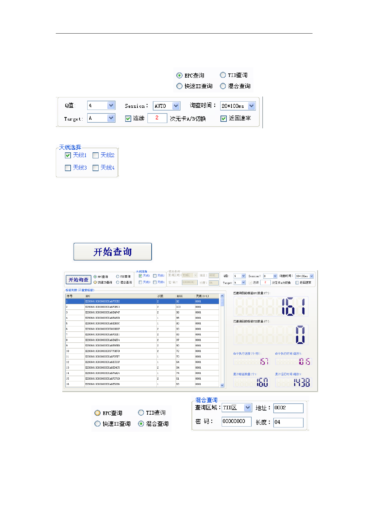 动,则按照预先设置好的天线、最大询查时间进行查询;当选择了返回速率以后,询查结束后