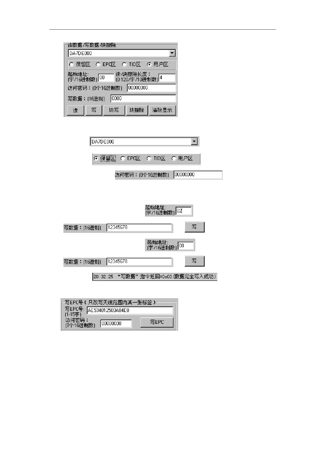 (2)向电子标签 EPC 区写入 EPC 号。