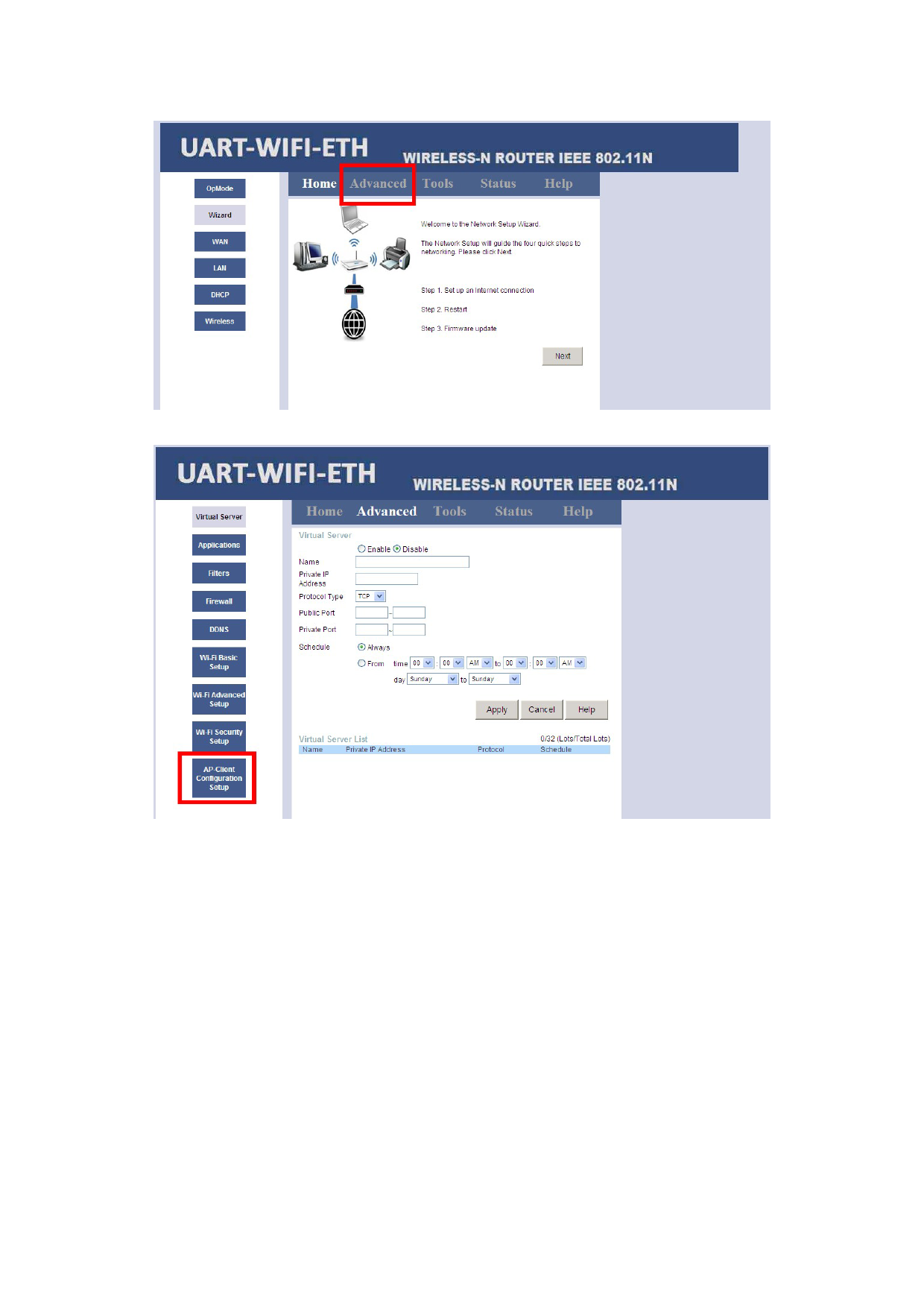 在高级配置页面中,选择“AP-Client Configuration Setup”,进入 wifi 连接配置界面。