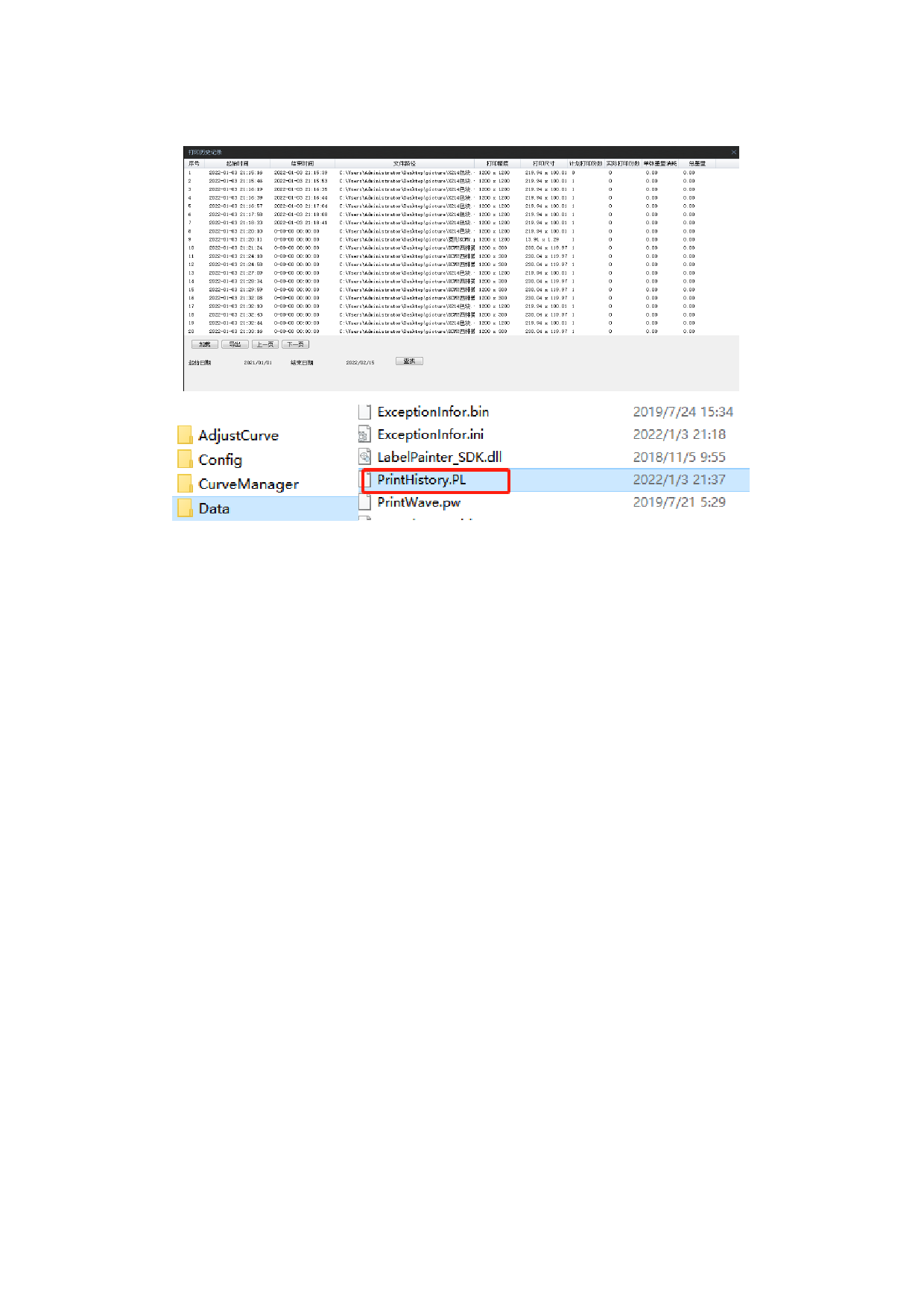 查找:前面日期设置好时间,点击查找可查看设置时间内的打印日志记录。