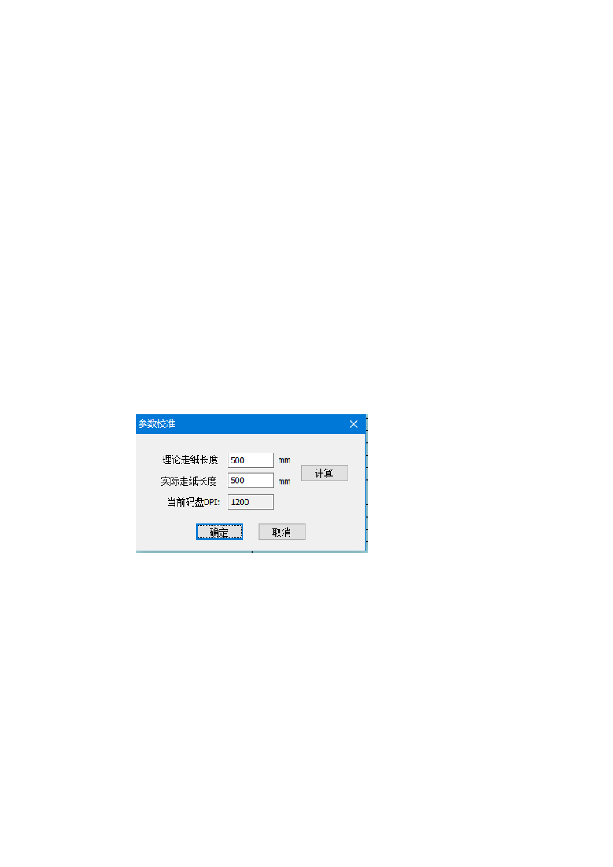 用刻度尺测量实际走料长度填入“实际走纸长度”里面,点击计算,然后确定。再次测