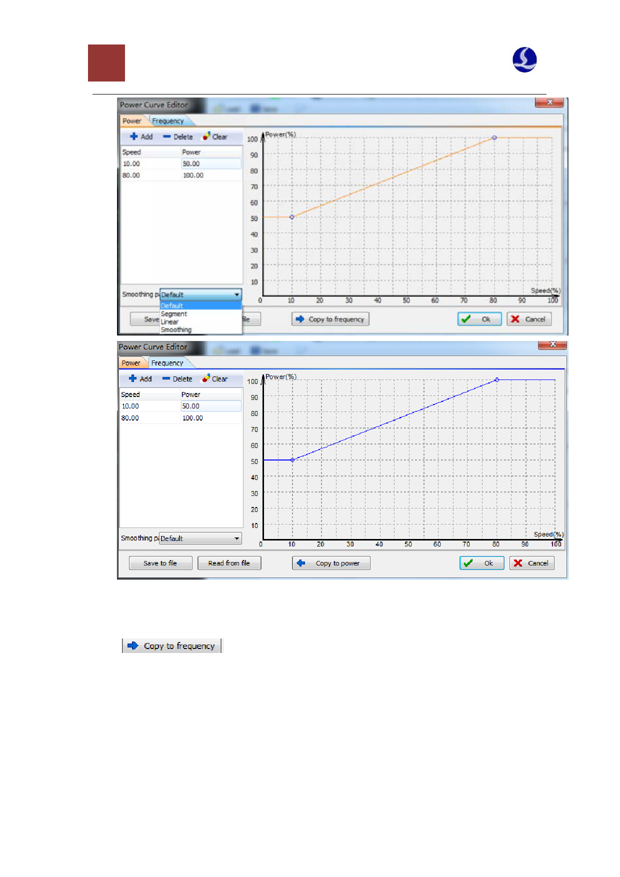 appropriate speed corresponding to power point and select the curve smoothing pattern. You can also