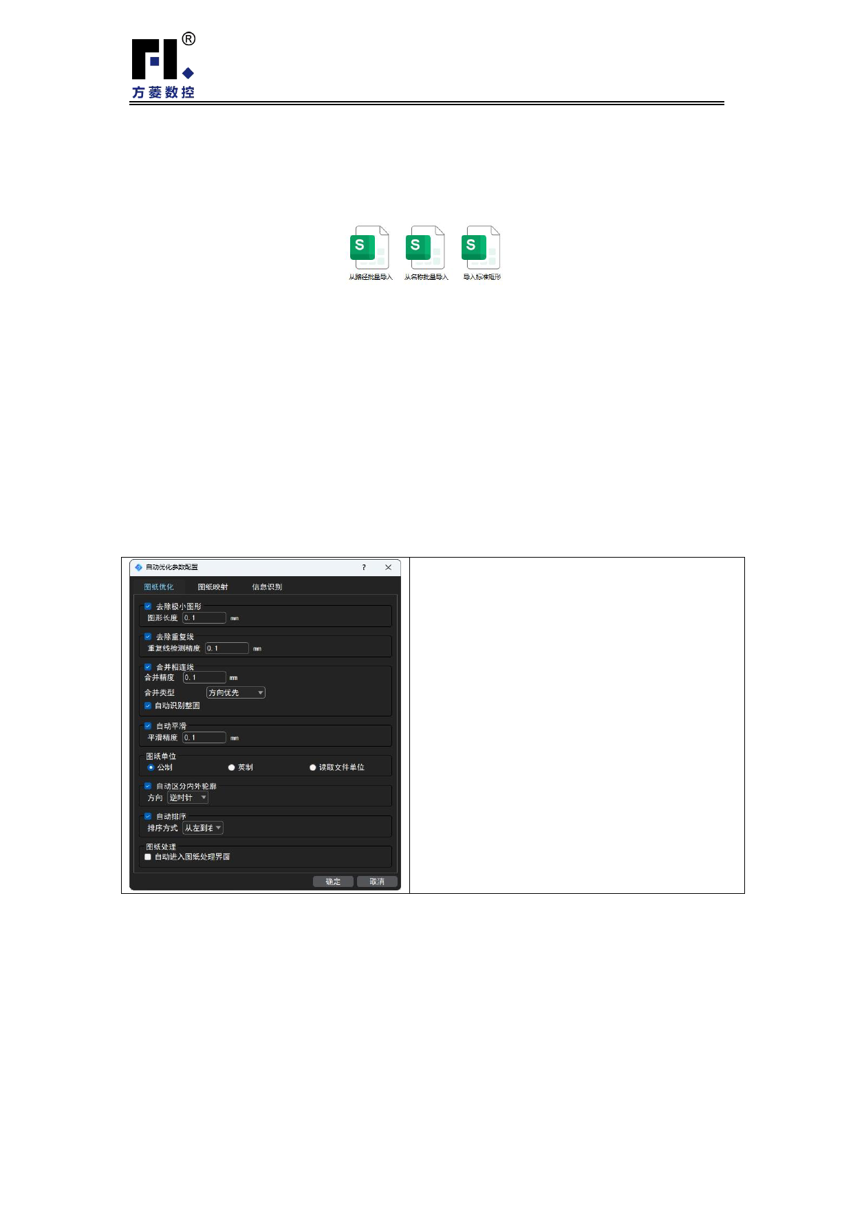 息识别,针对当前零件图纸进行导入设置:
